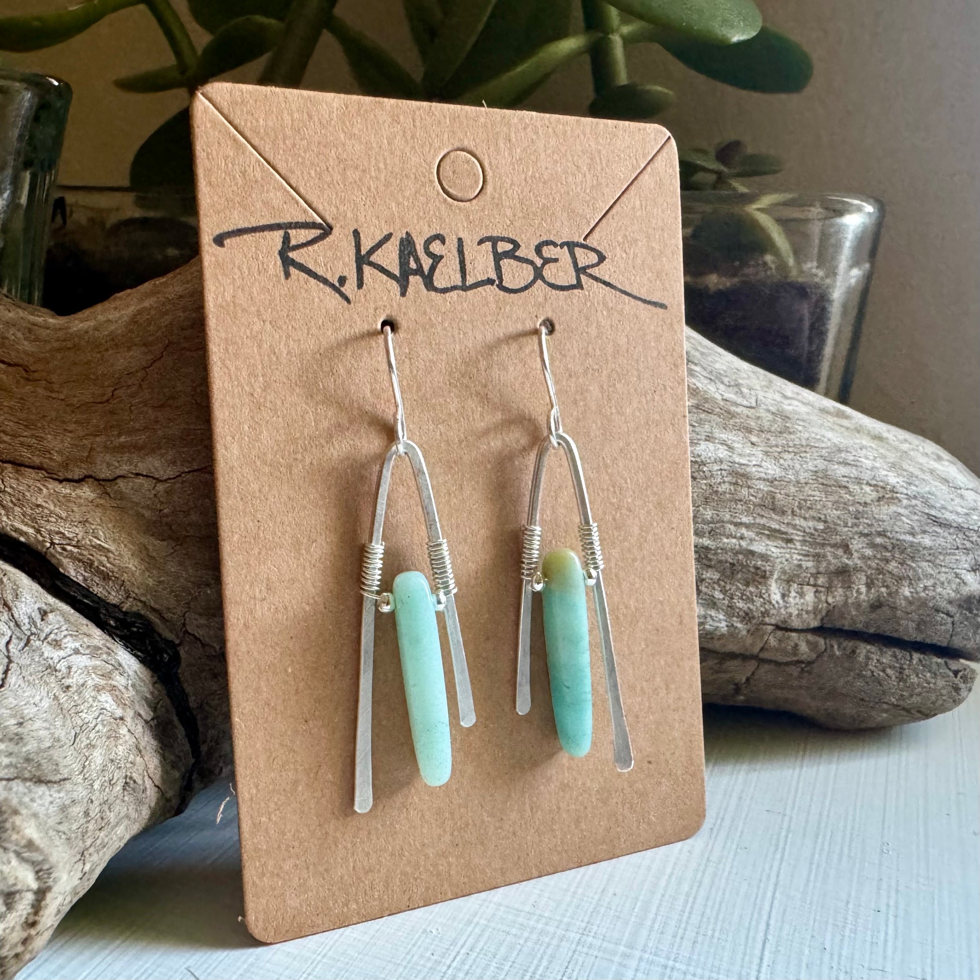 Amazonite A-Frame Earrings with Hammered Sterling Silver.