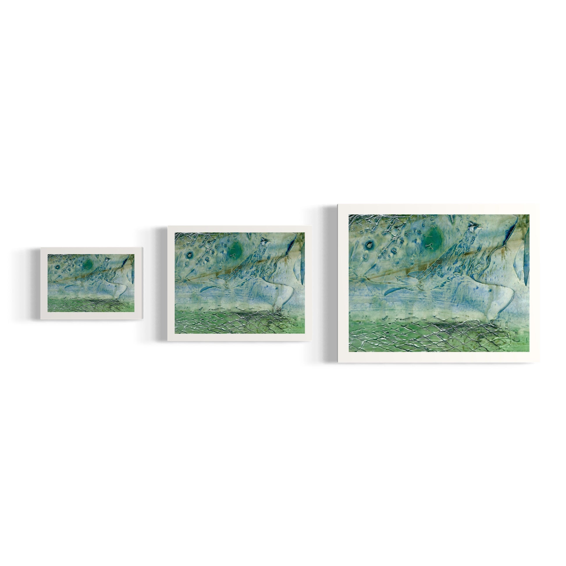 I painted the original piece with acrylic paint on paper. In the Downpour series, I experimented with different textures and iridescent paint.