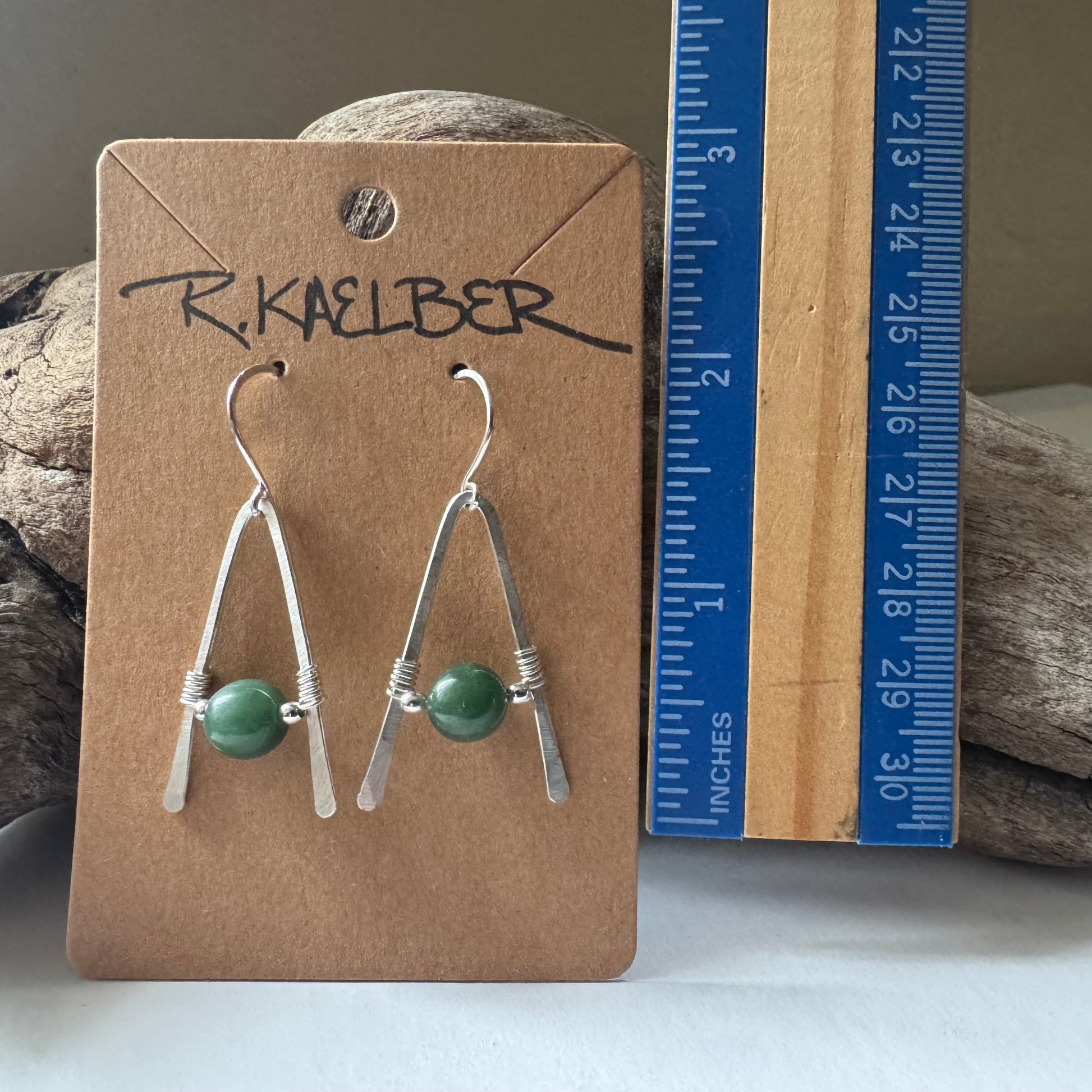 Jade A-Frame Earrings with Hammered Sterling Silver. Perfect for everyday.