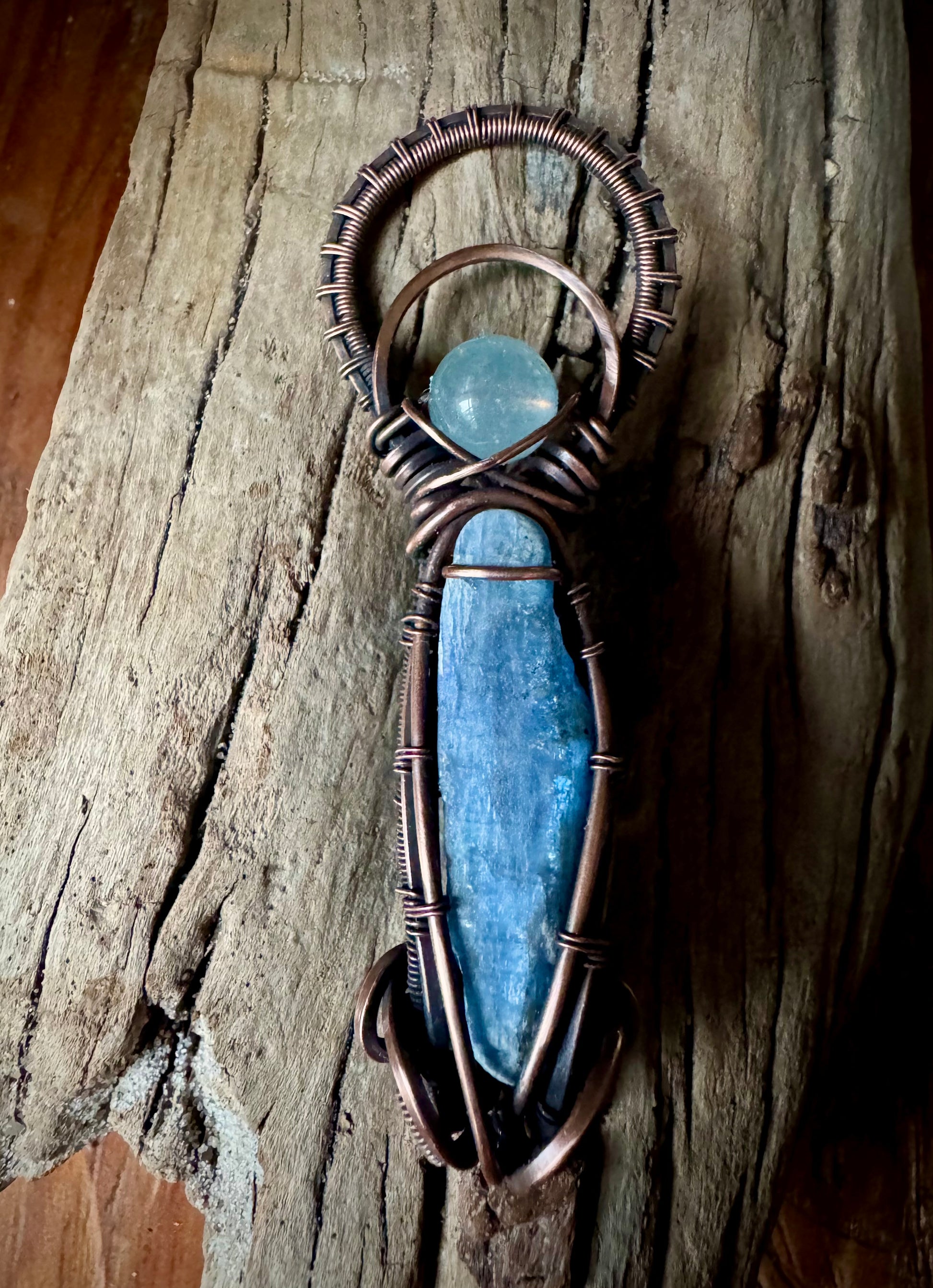 Aquamarine, Kyanite, and Copper Wire Wrapped Pendant