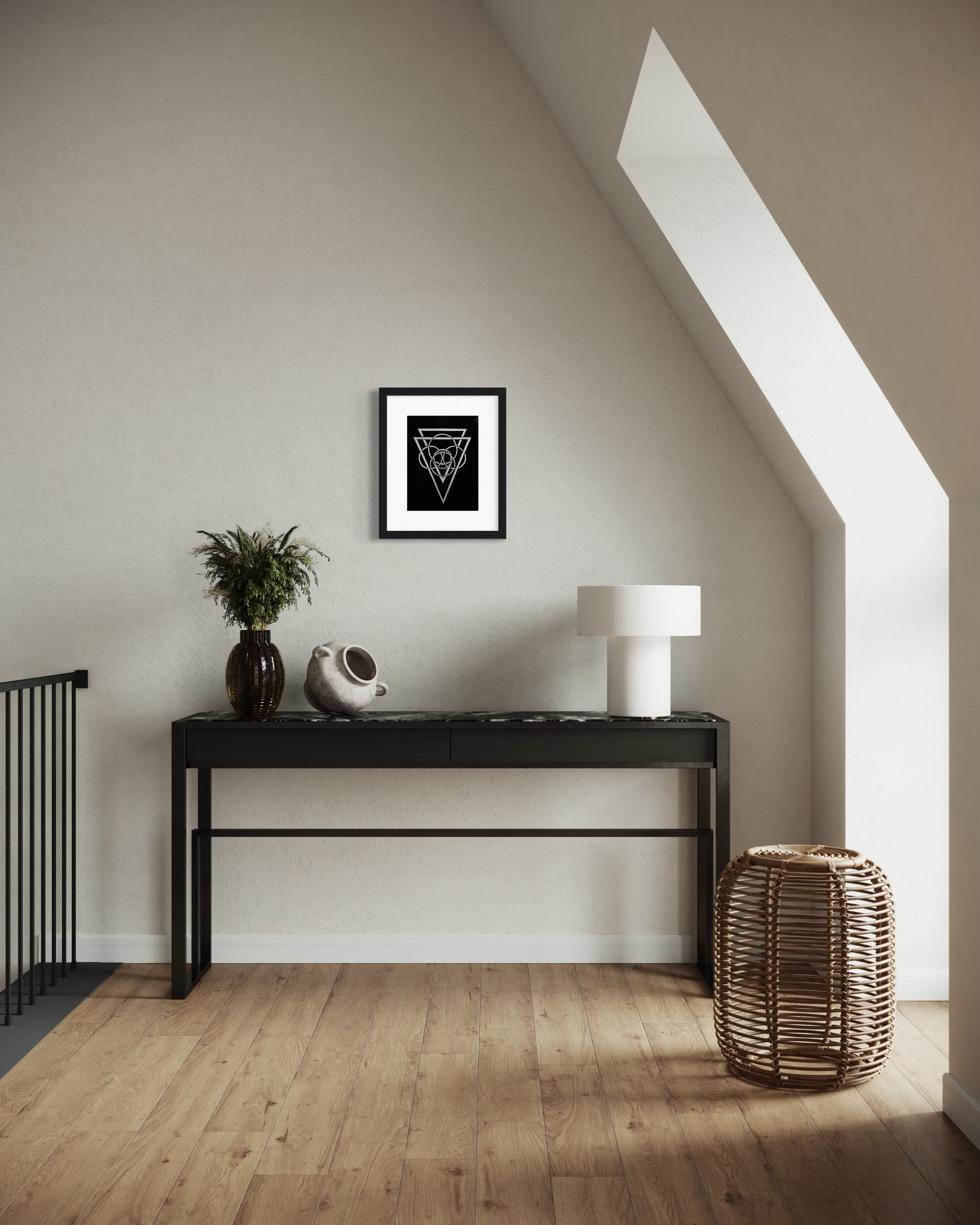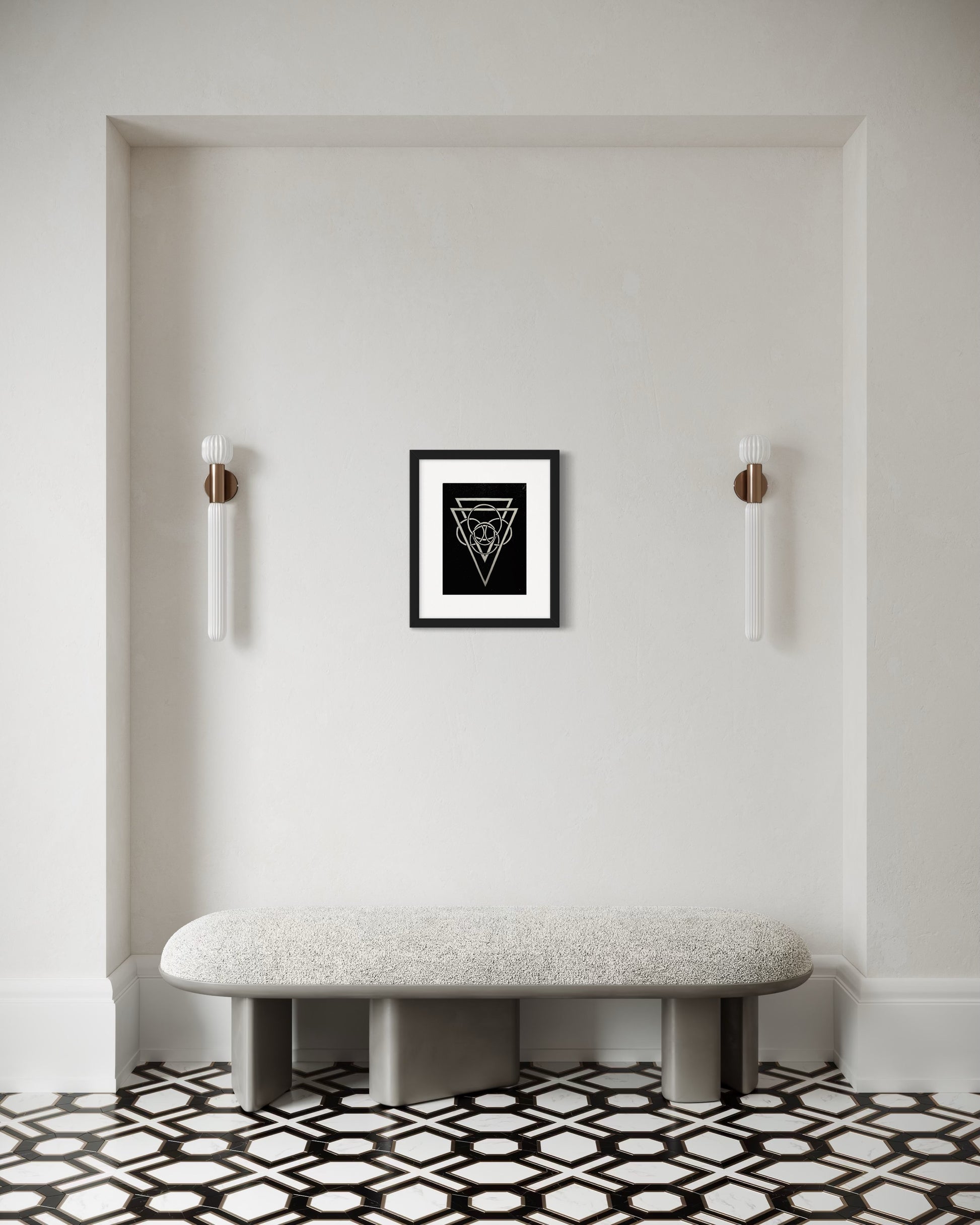 Energy Direction (Black background) 9/9 Framed - Original Linocut Print with Black Ink on Paper