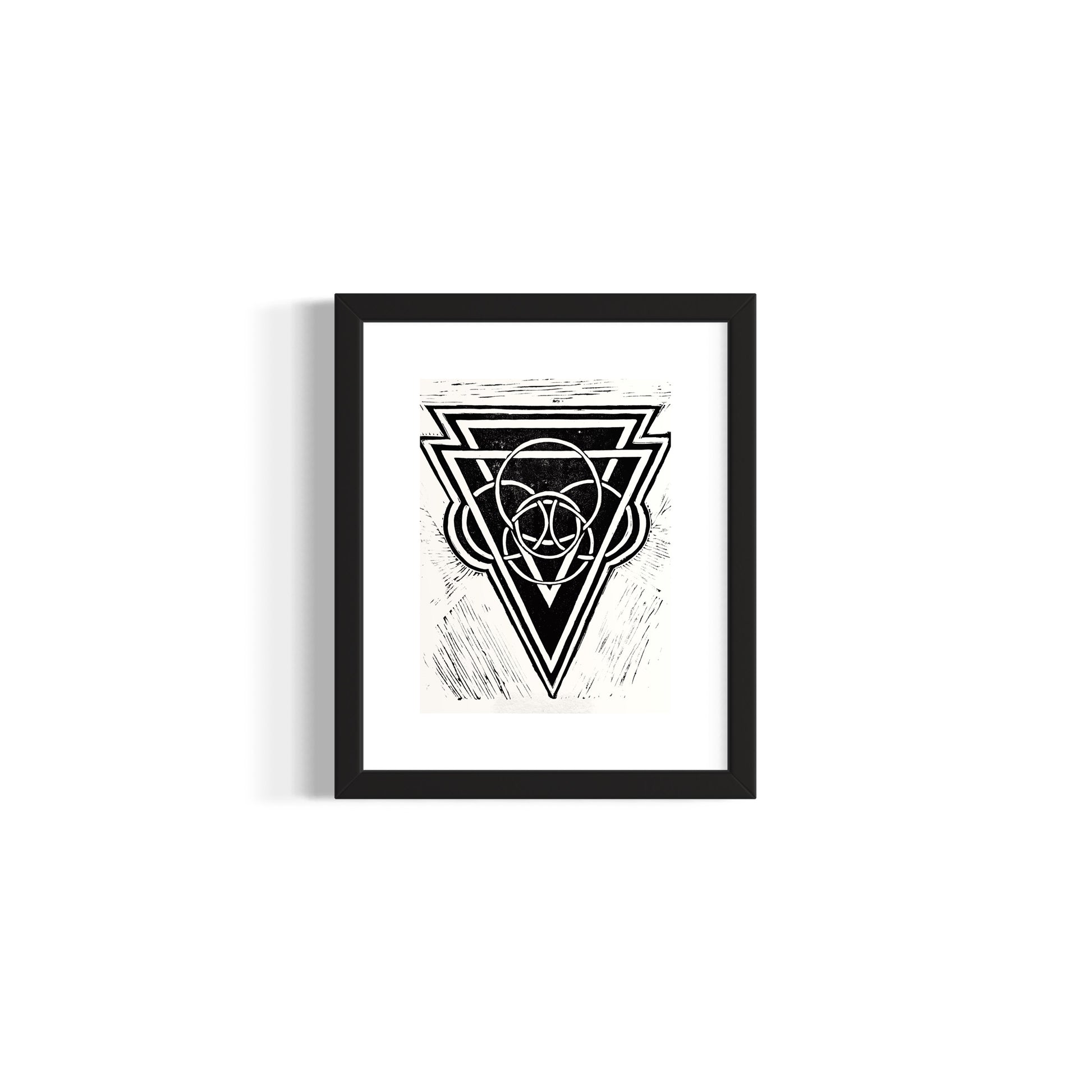 Energy Direction 1/10 Framed - Original Linocut Print with Black Ink on Paper