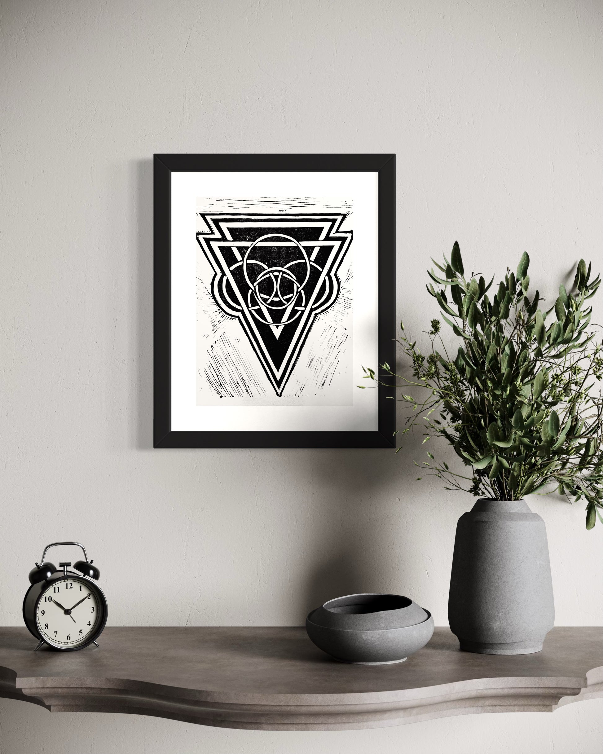 Energy Direction Edition of 10- Original Linocut Print with Black Ink on Paper
