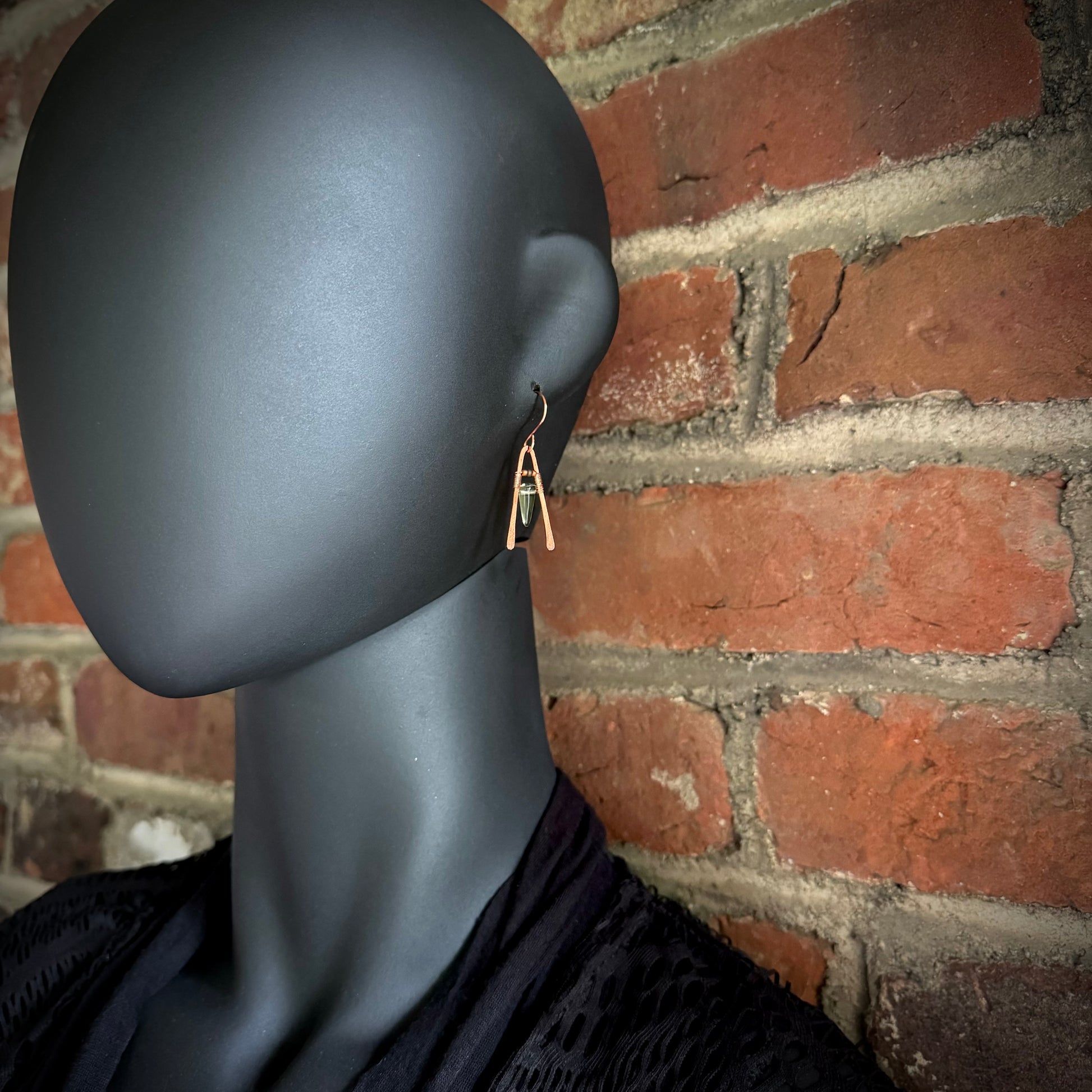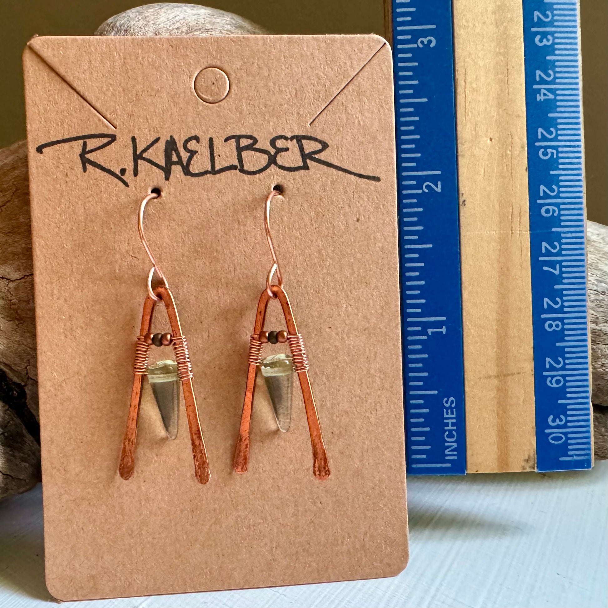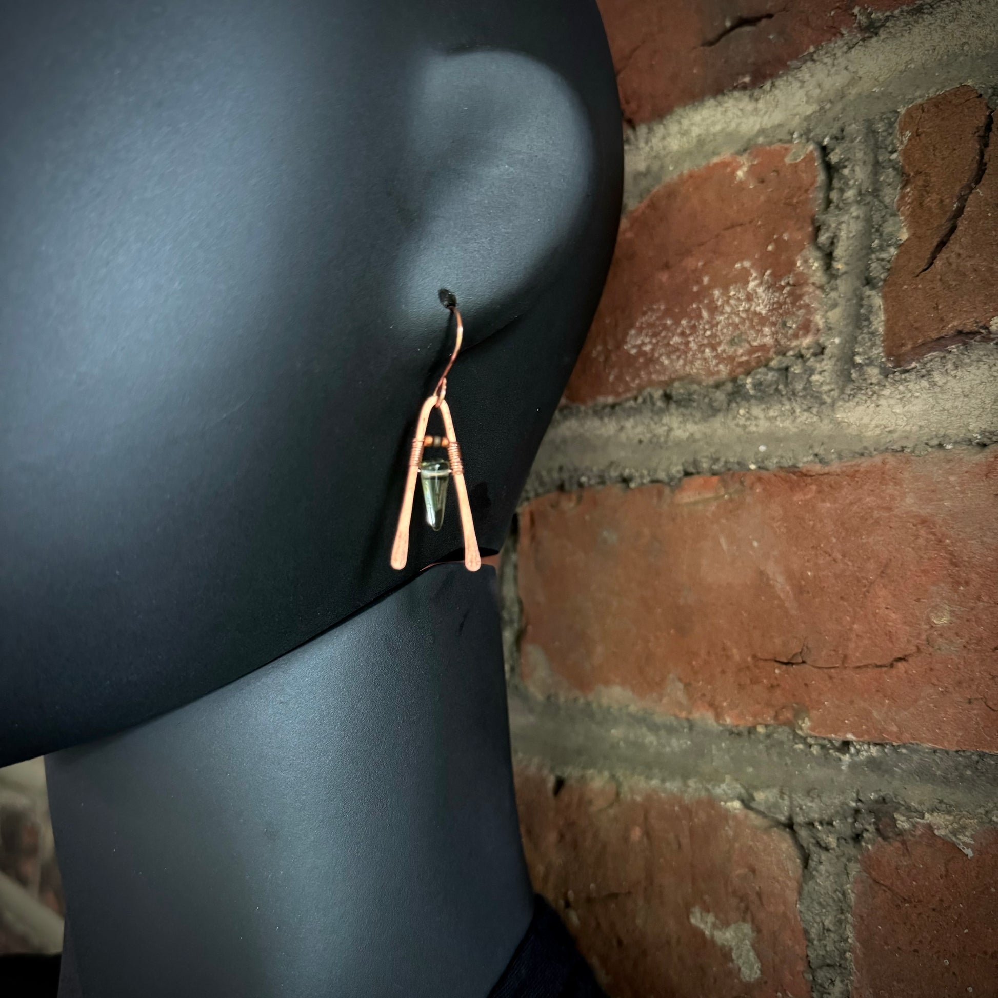Fluorite and Hammered Copper A-Frame Earrings - Made to Order