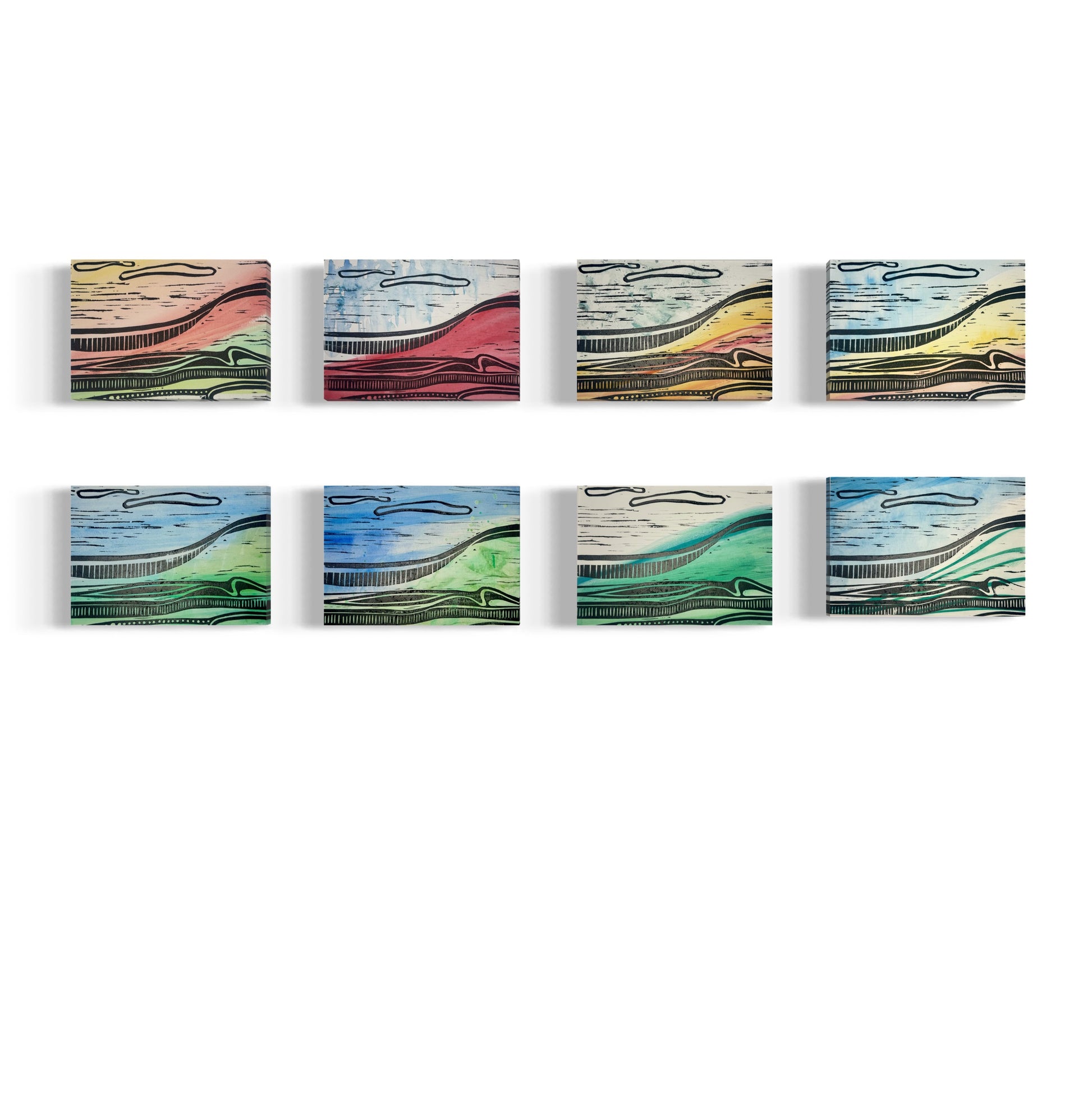 Kalapaki Beach Edition Variable of 15 with Watercolor - Original Linocut Print with Black Ink on Paper