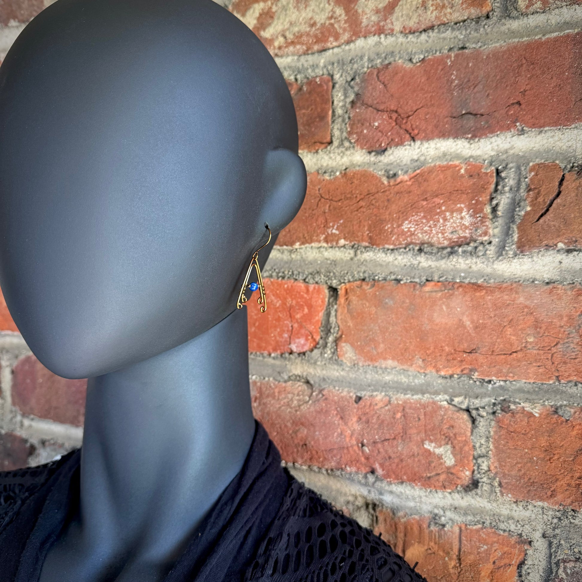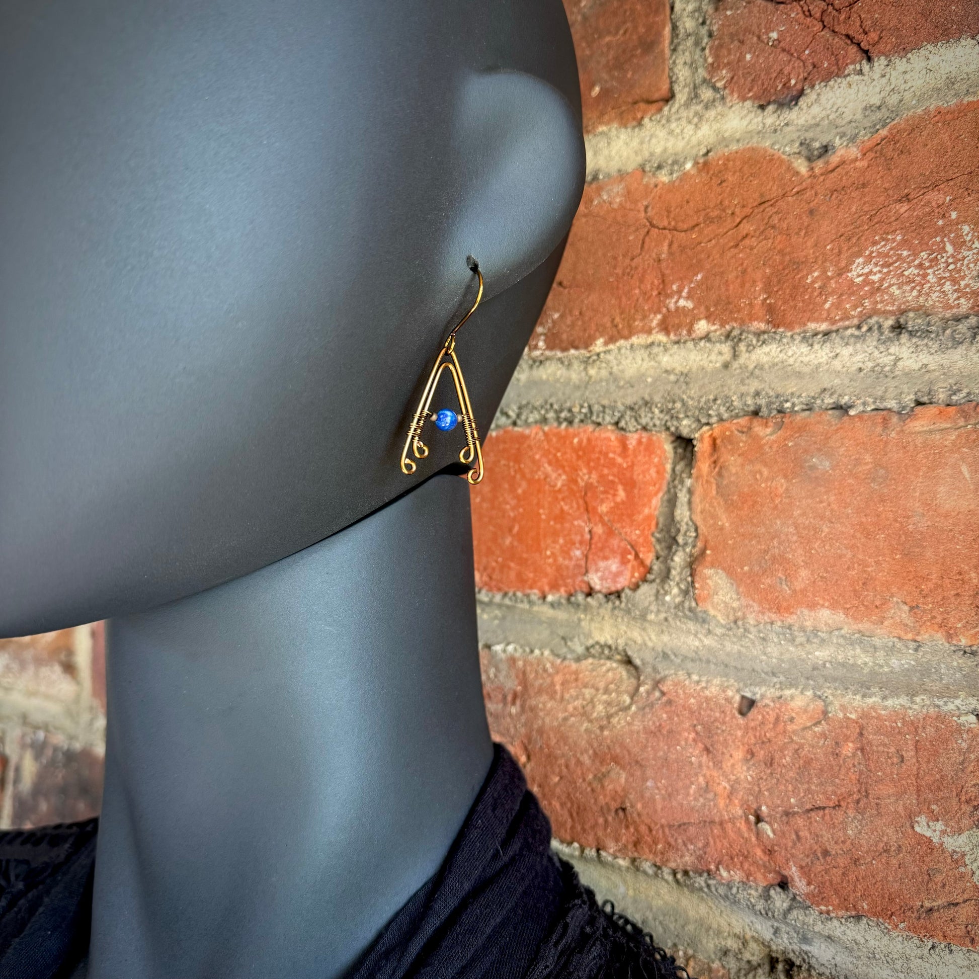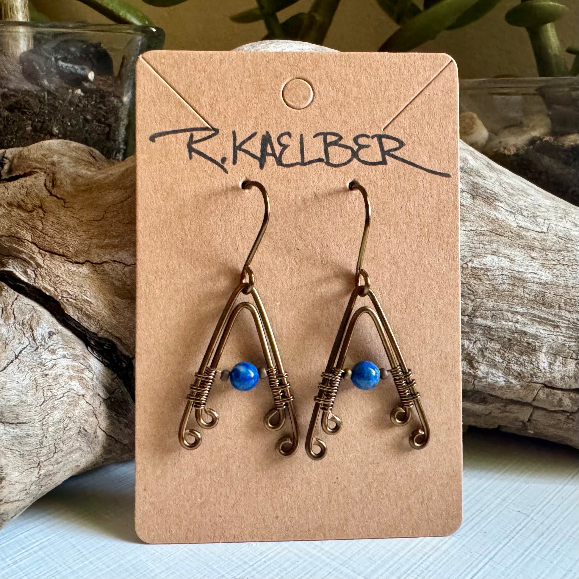 Lapis Lazuli Wire Wrapped A-Frame Earrings with Antique Bronze