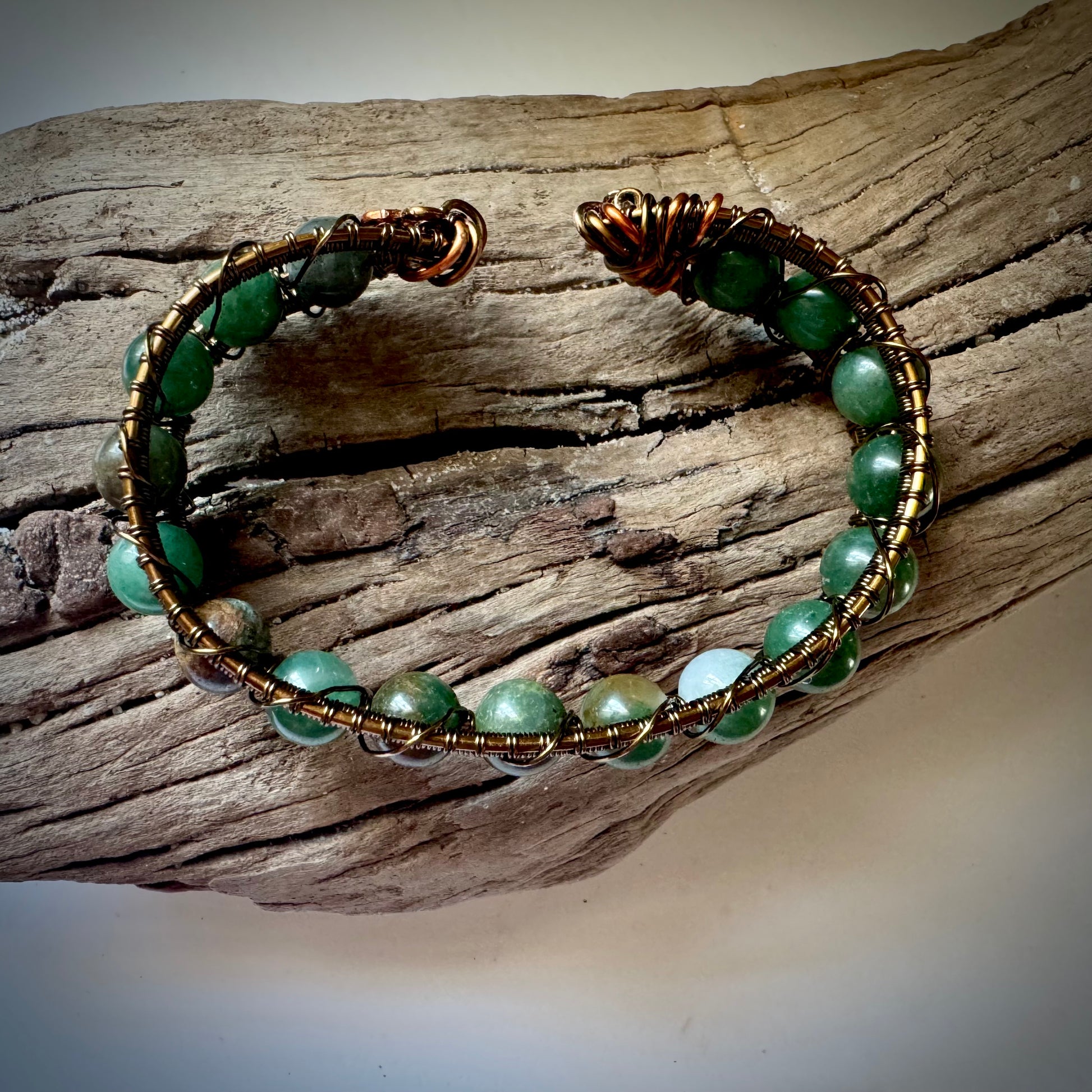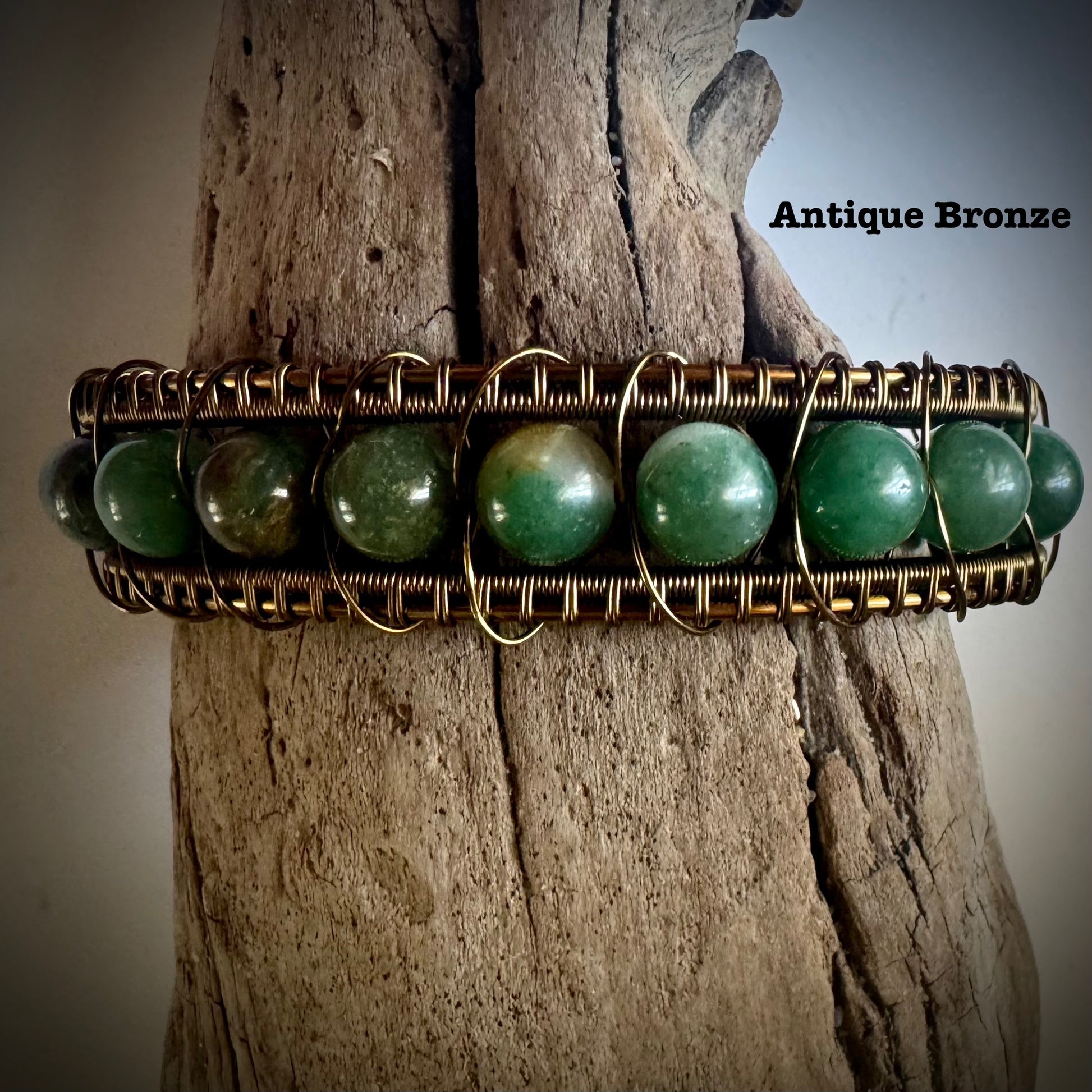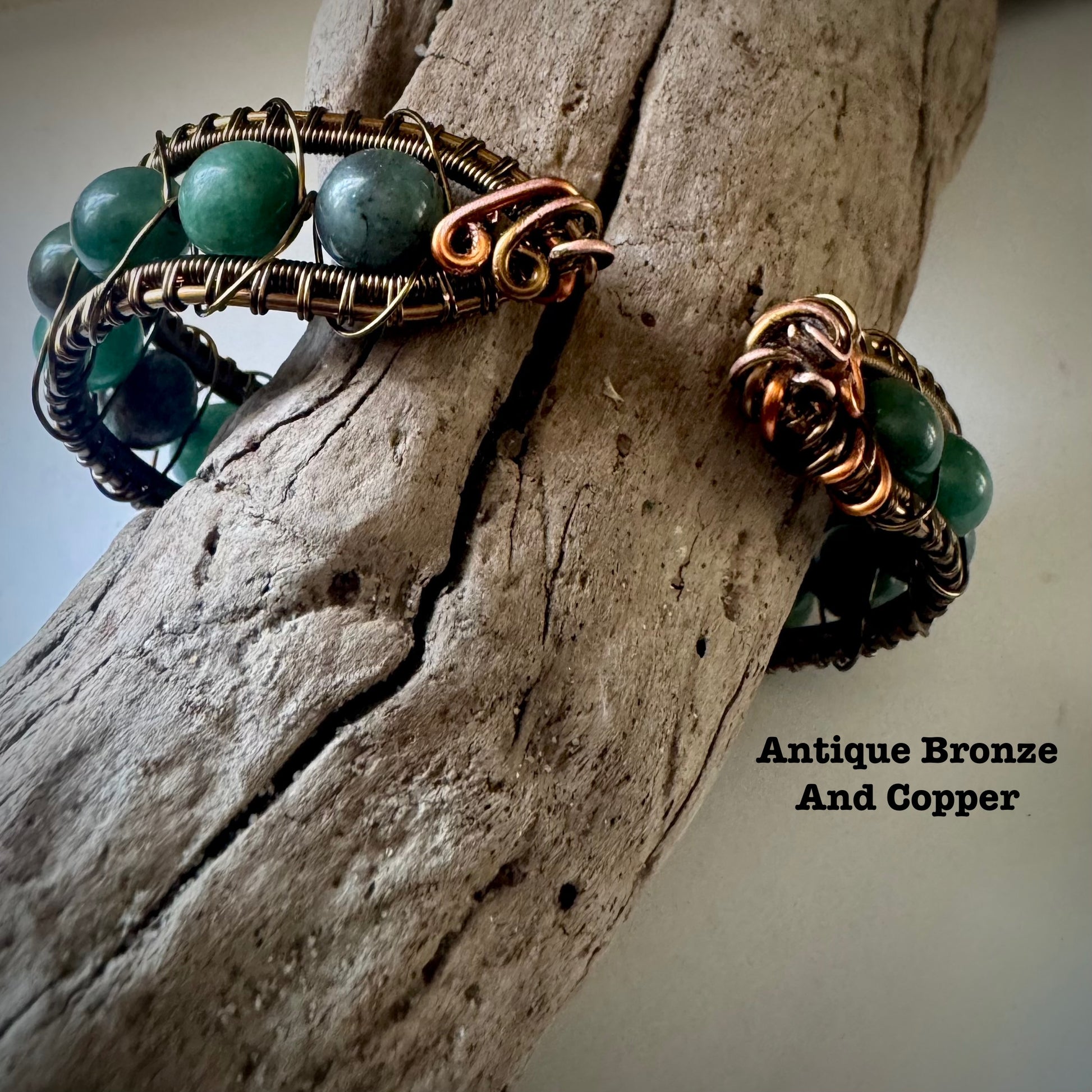 Jade wire wrapped cuff. This cuff can be made with Copper or antique Bronze or both.