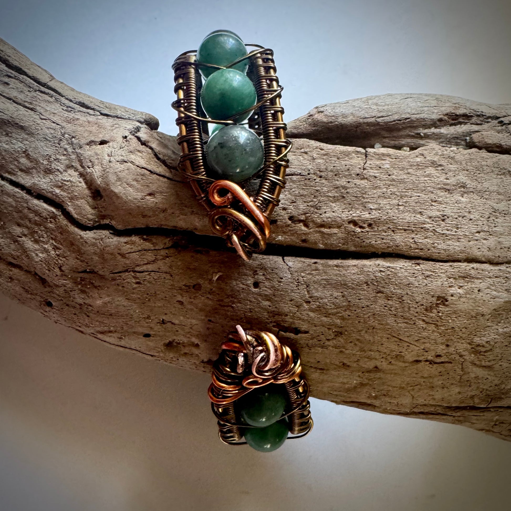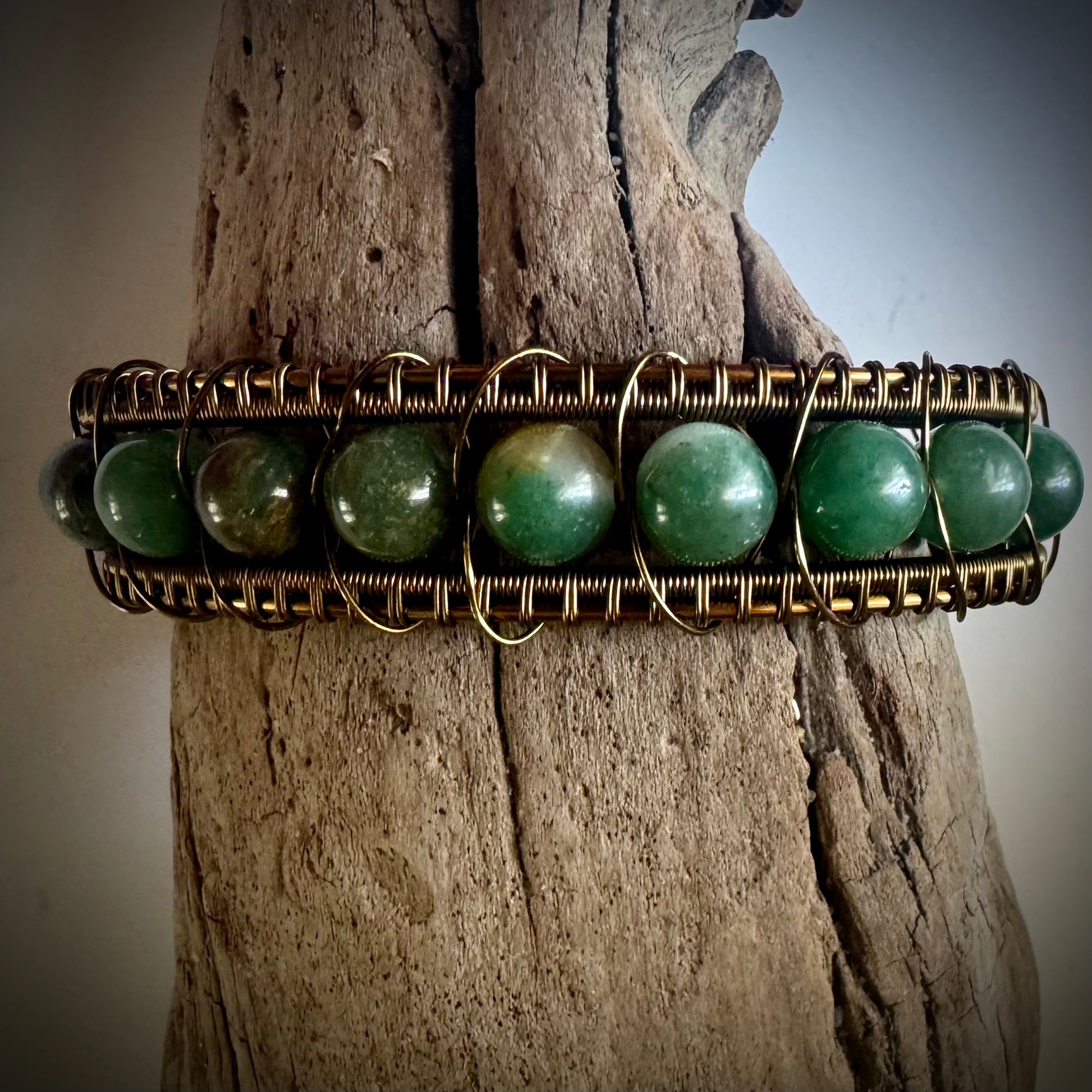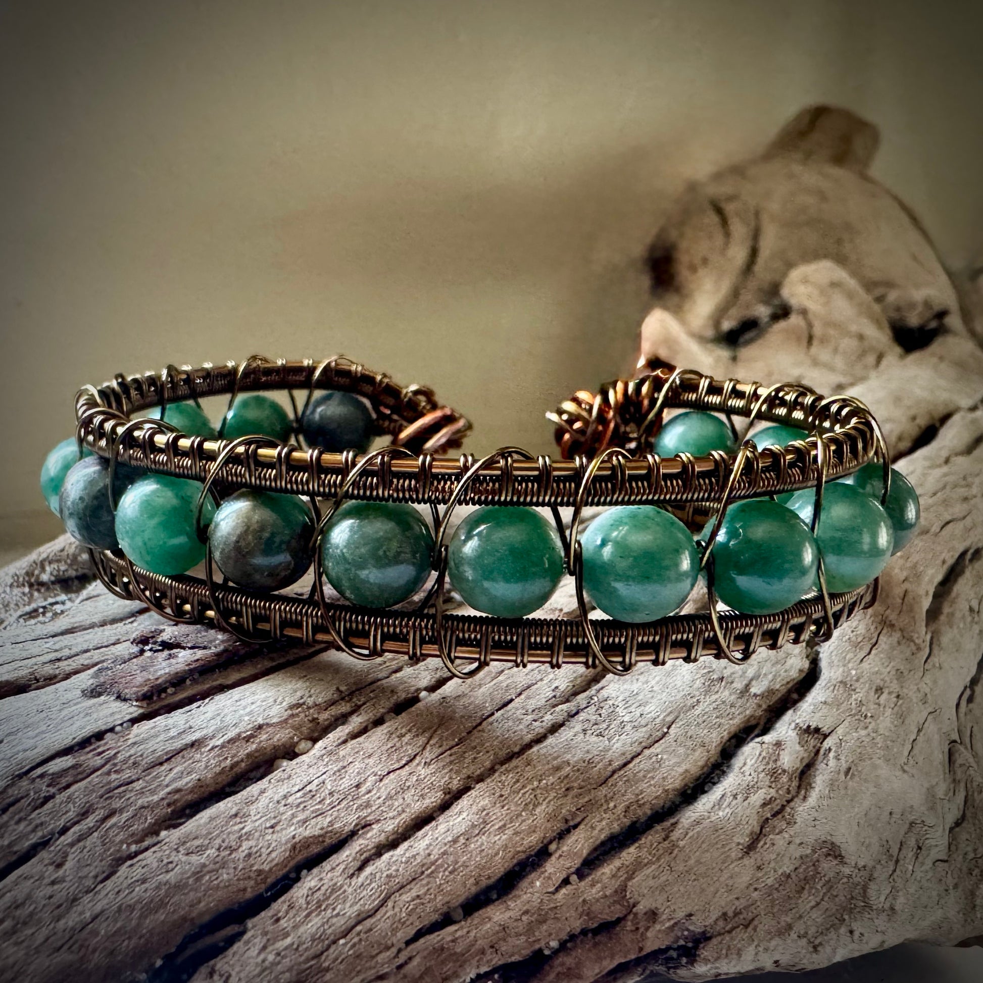 Jade wire wrapped cuff. This cuff can be made with Copper or antique Bronze or both.
