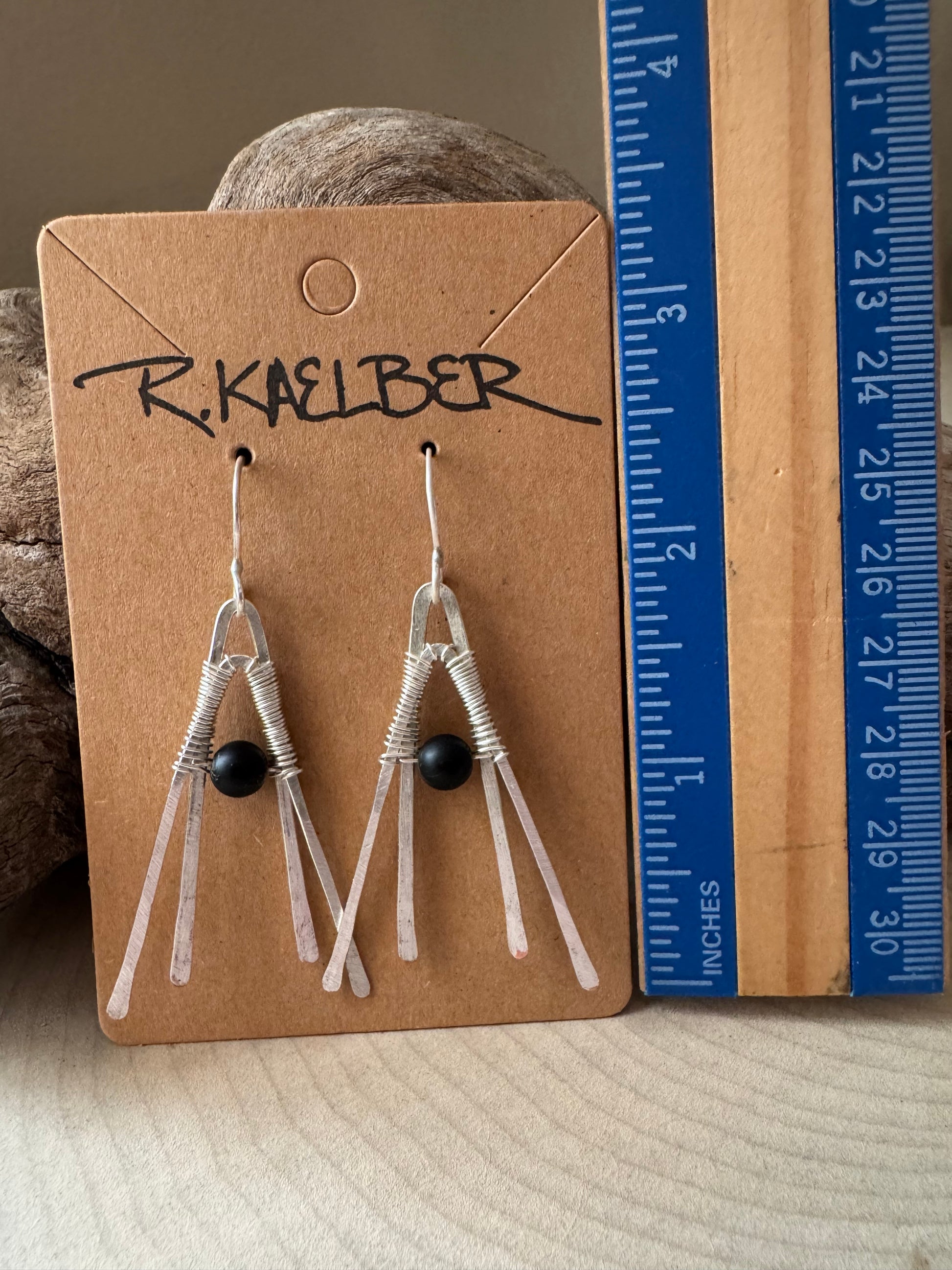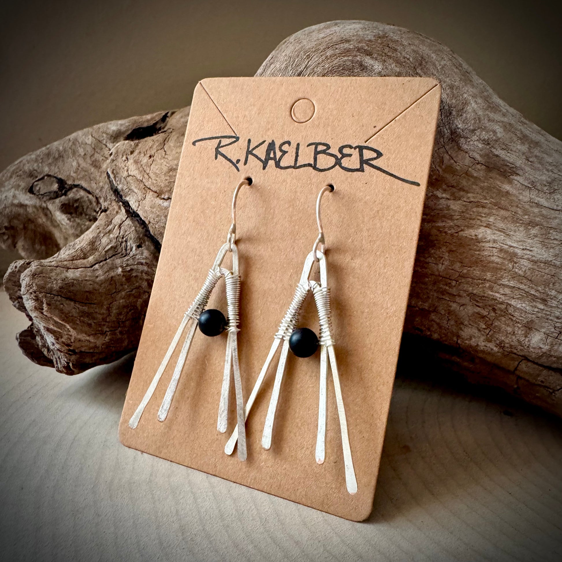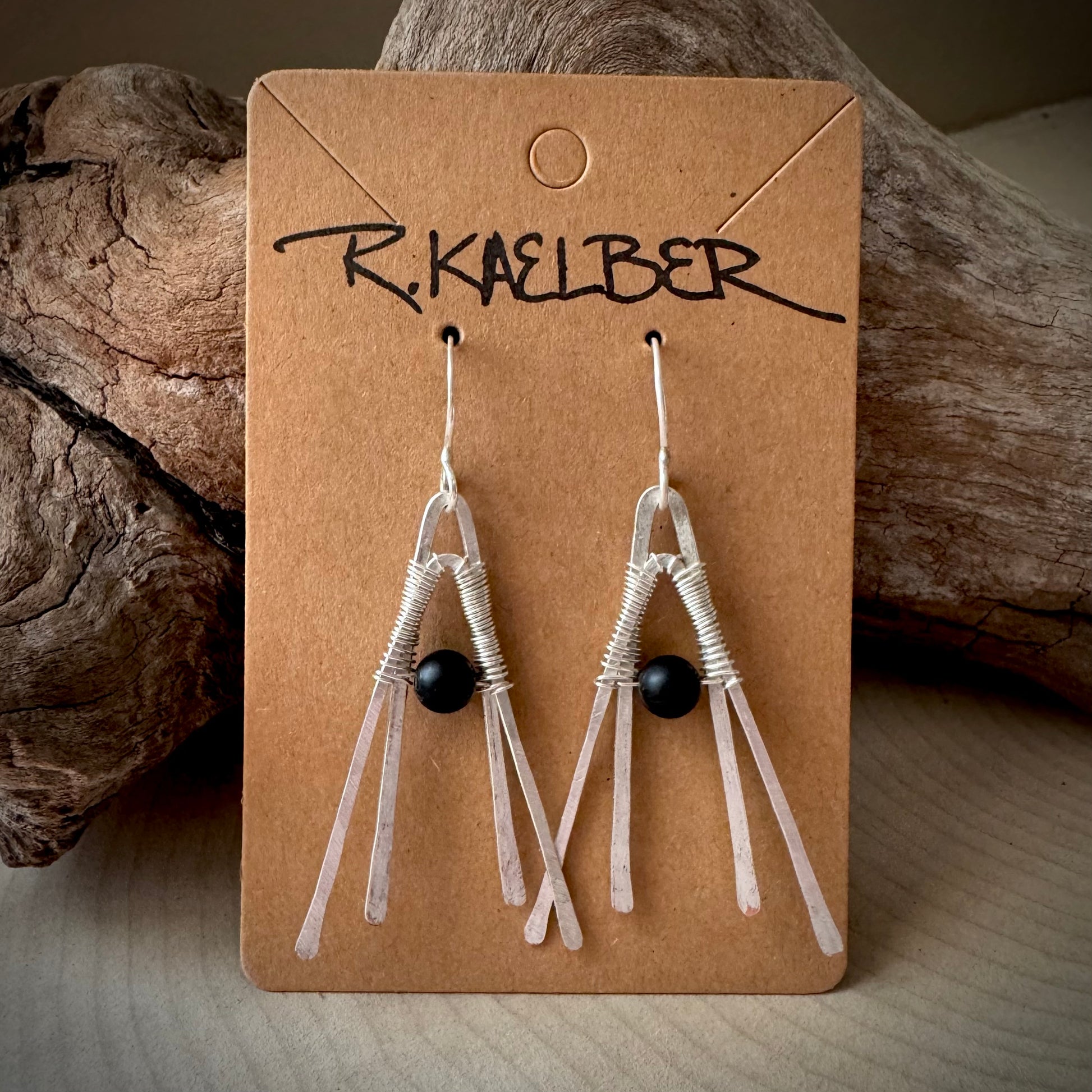 Onyx and Hammered Sterling Silver Double A-Frame Earrings