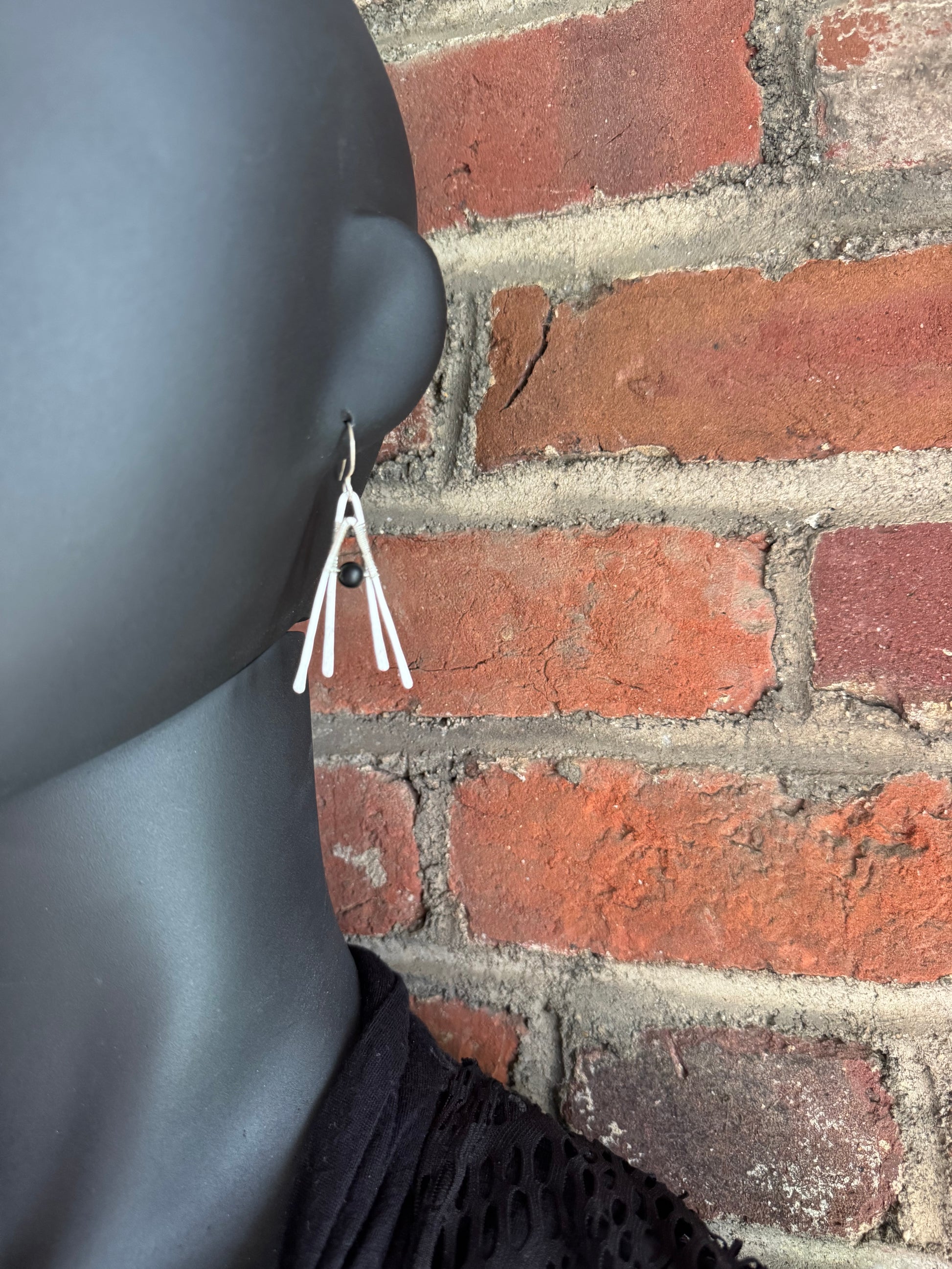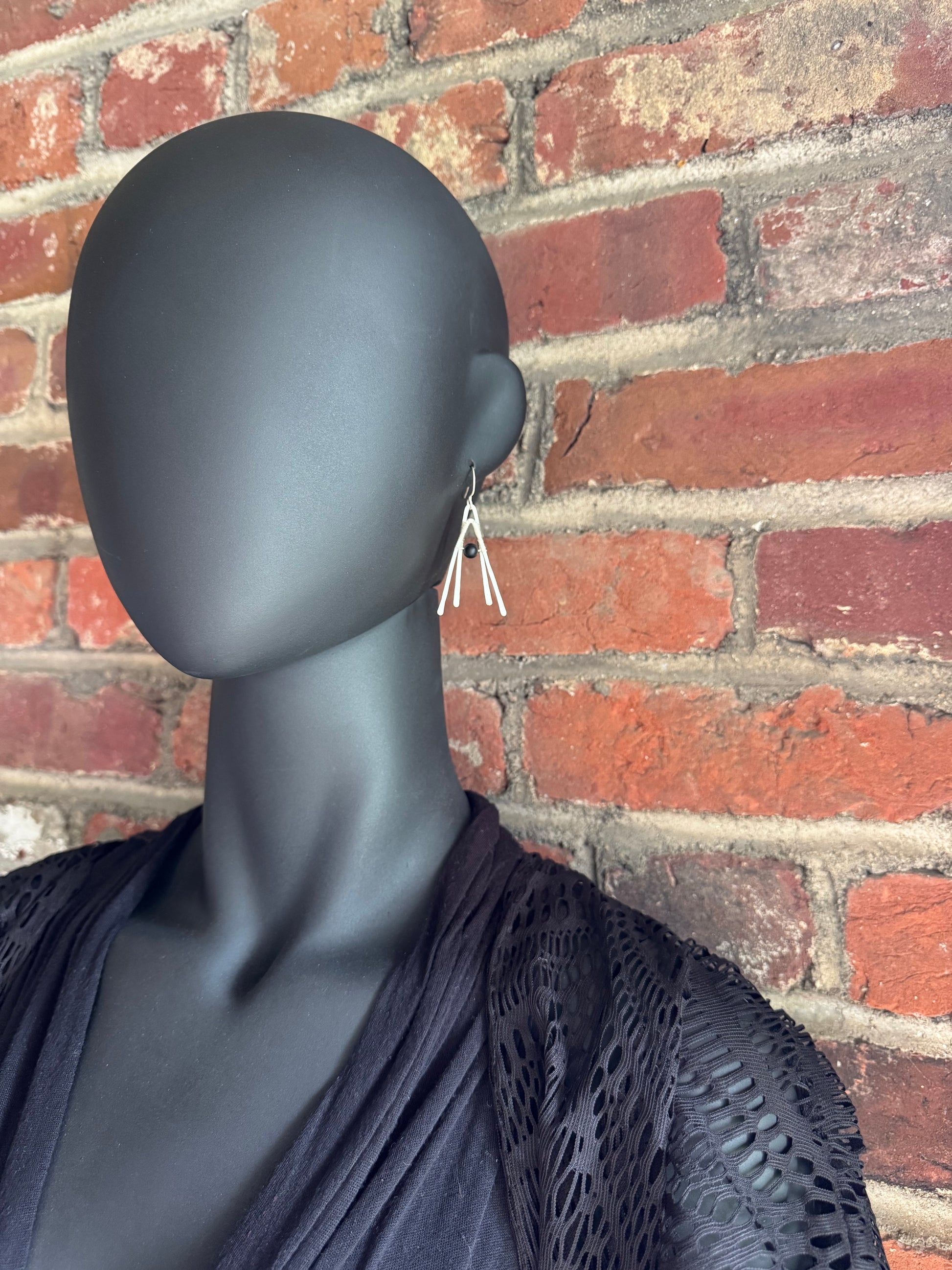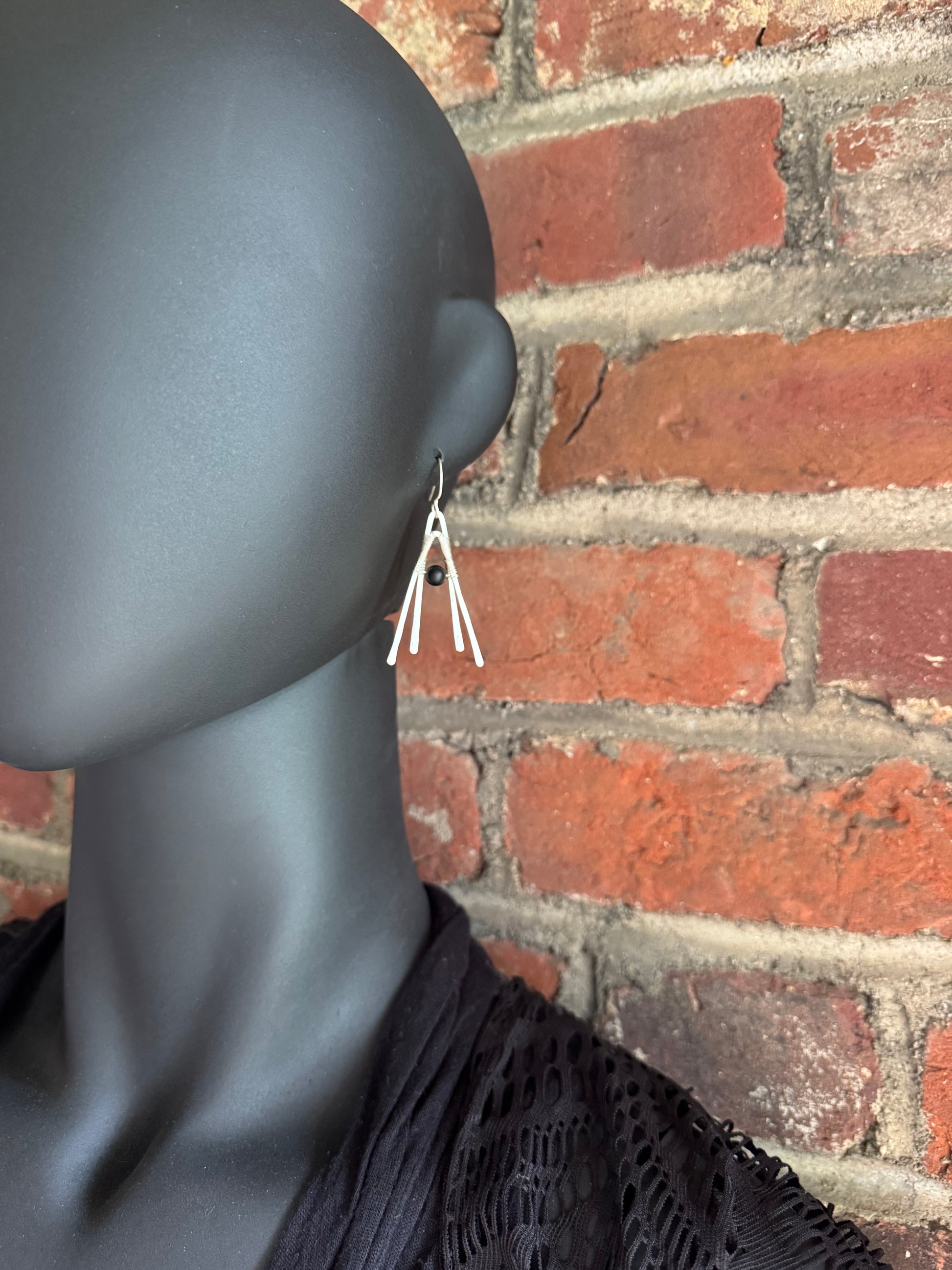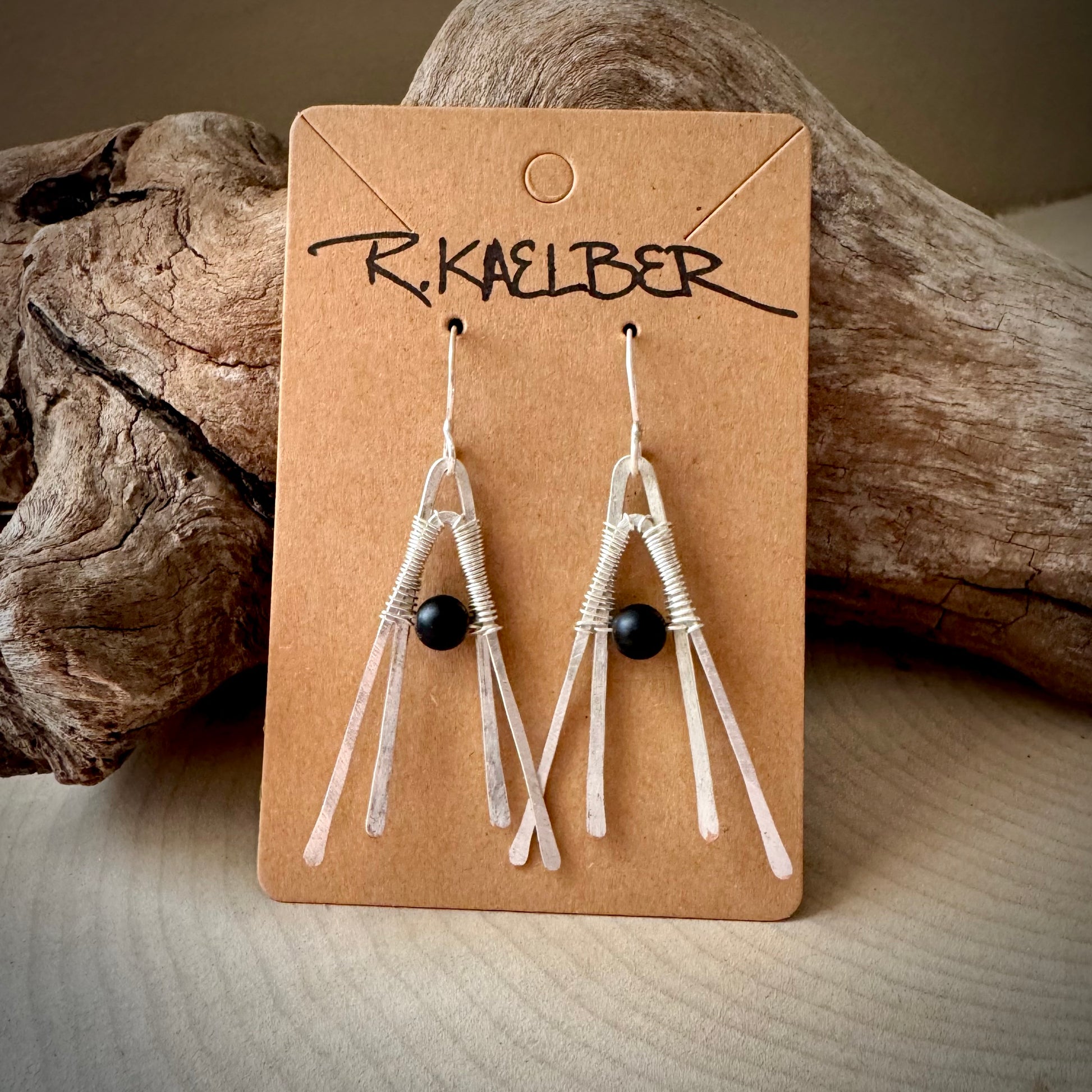 Onyx and Hammered Sterling Silver Double A-Frame Earrings