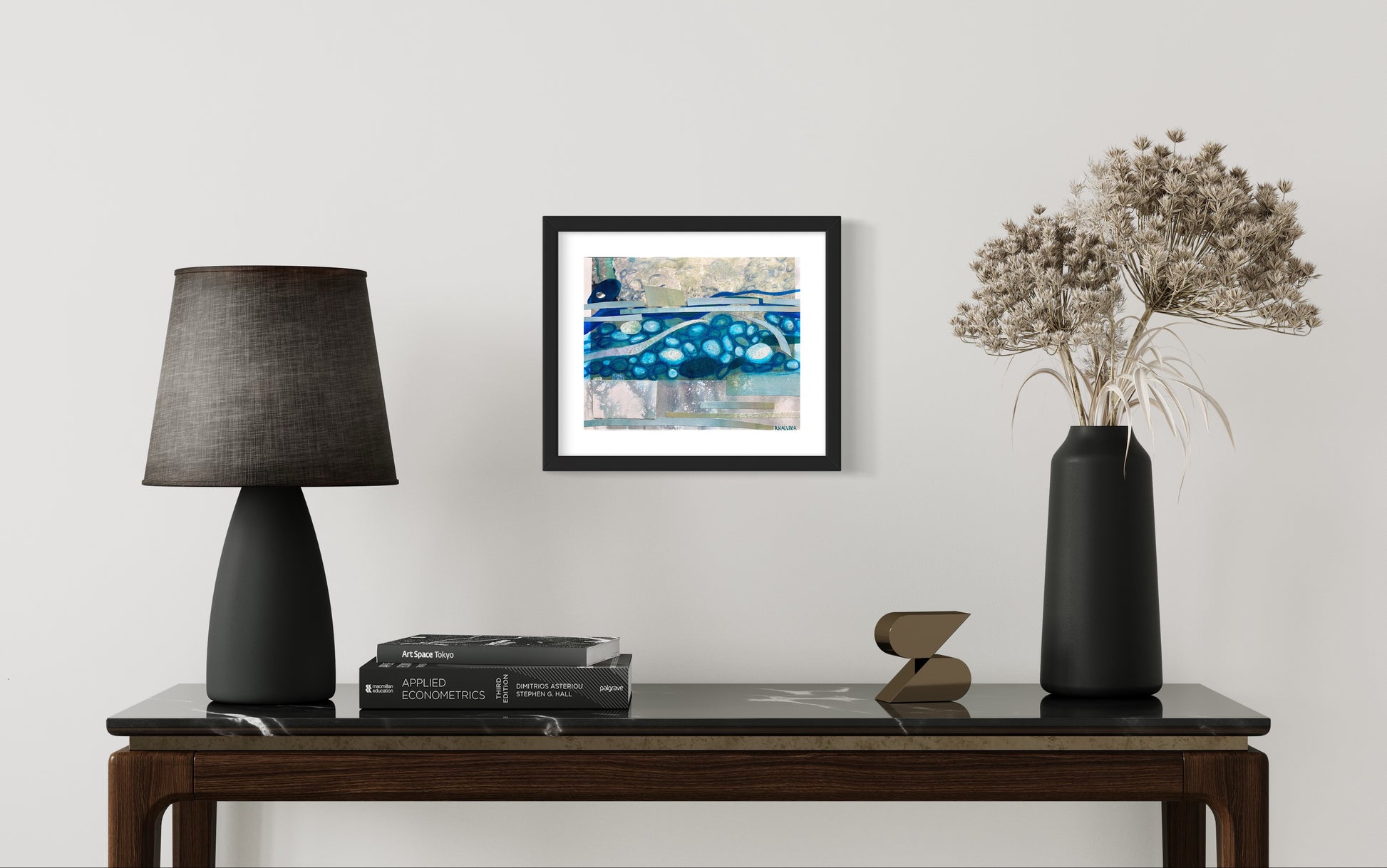 Framed. White mat with black frame. Frame size 12”x15”