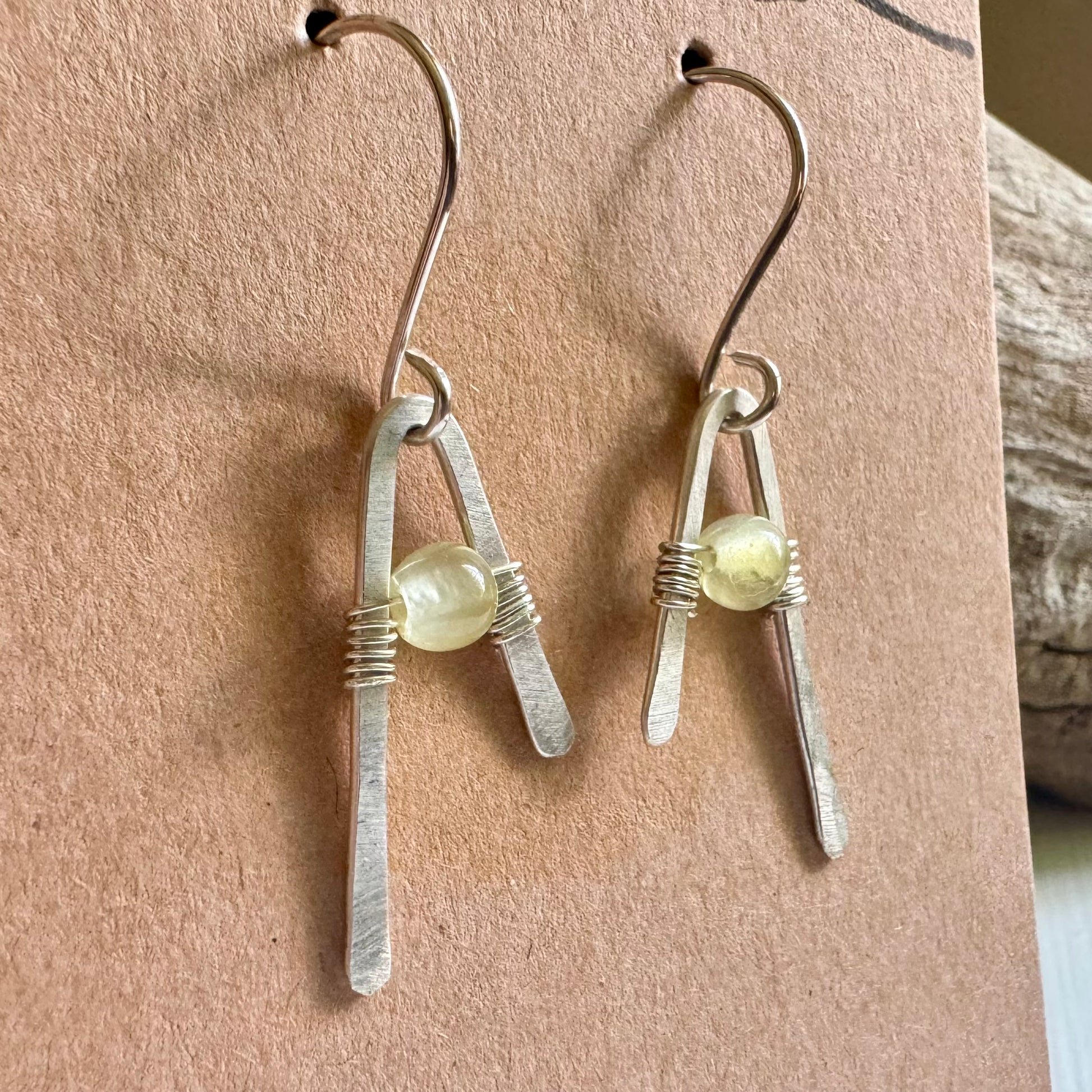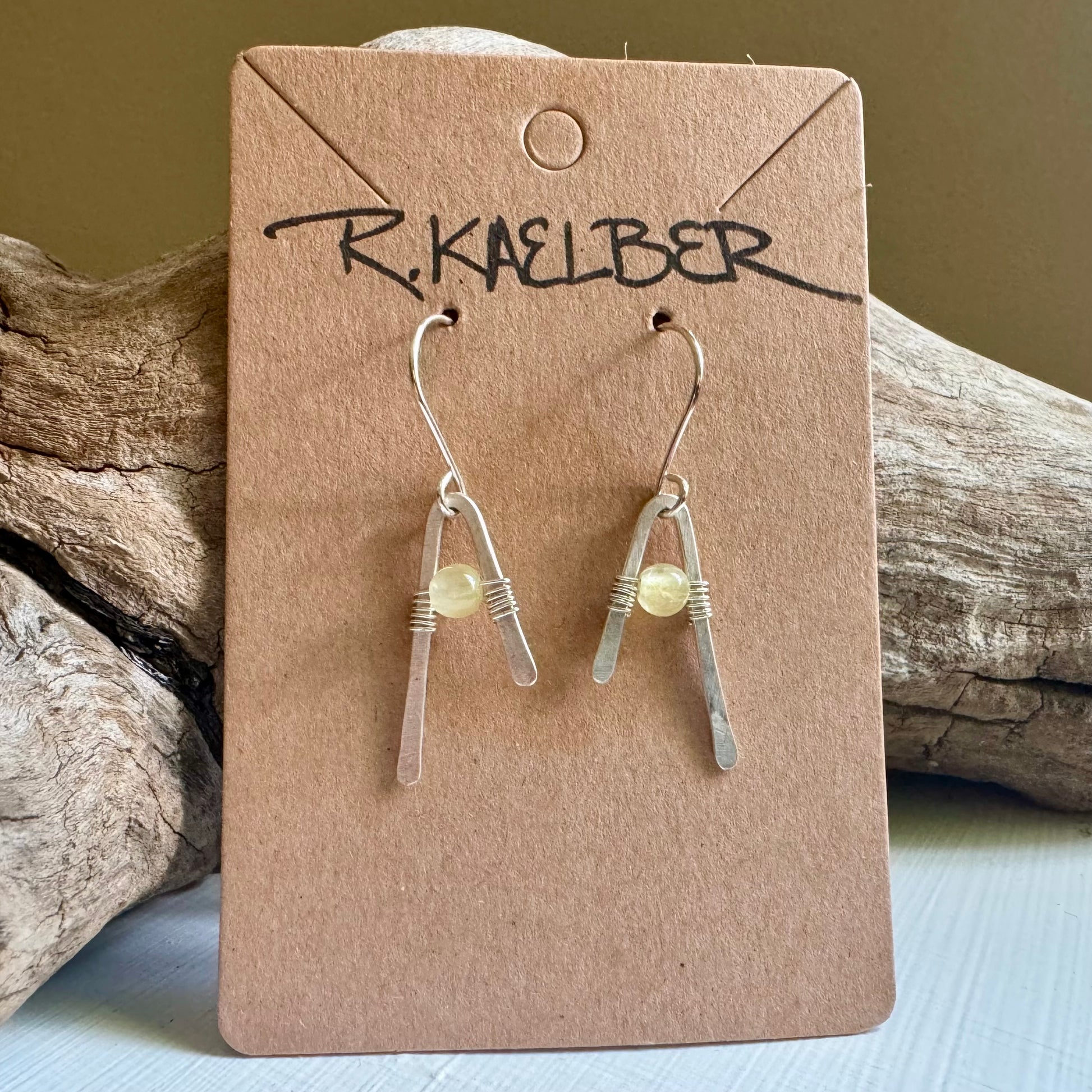 Prehnite and Hammered Sterling Silver A-Frame Earrings - Made to Order