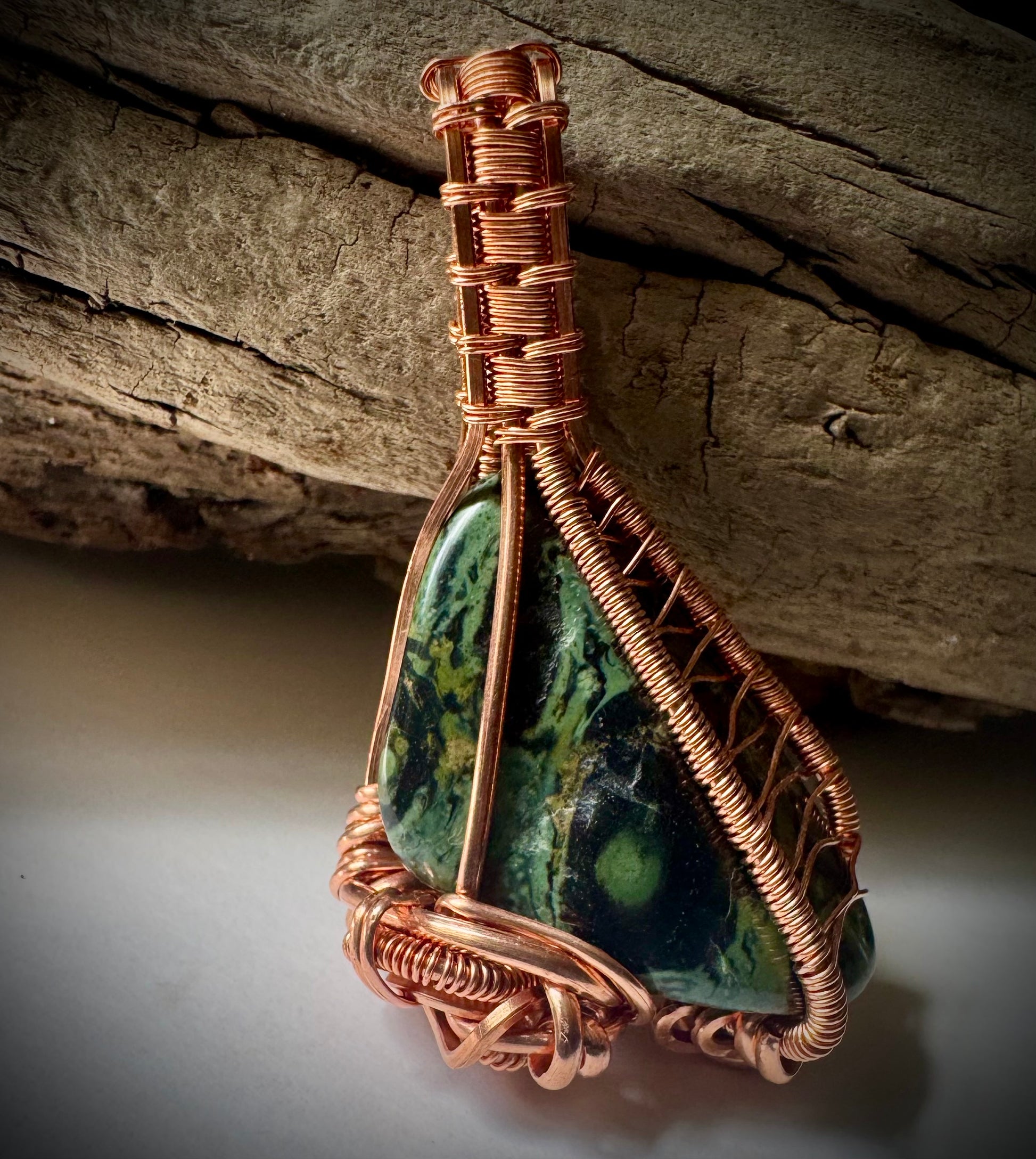 Copper wire wrapped pendant Kambaba Jasper stone.
