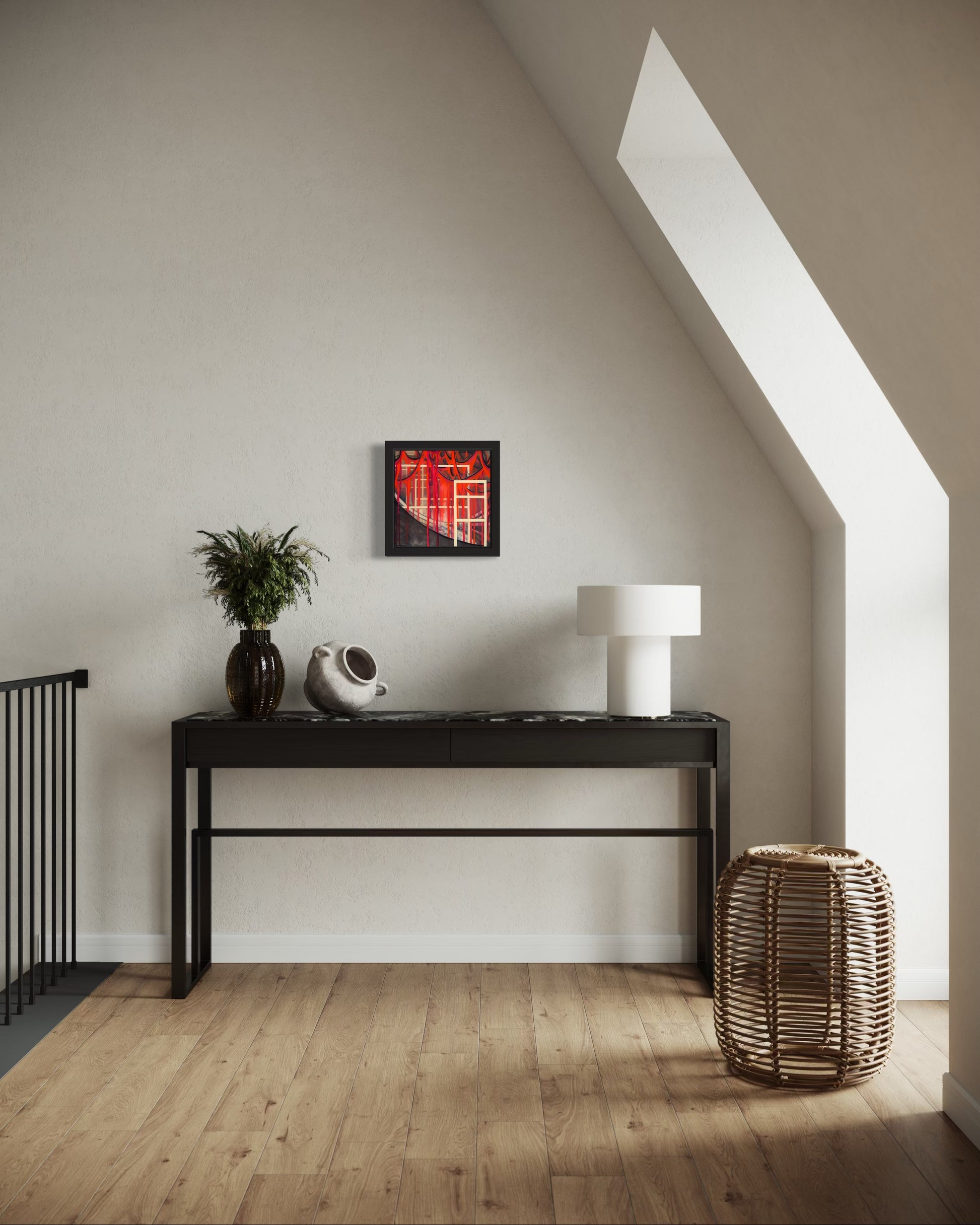 Medium: Acrylic, graphite, and resin on stretched canvas.