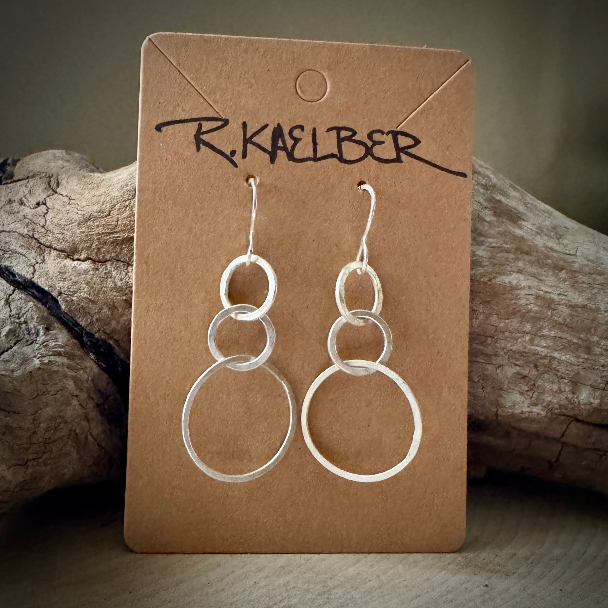 Handmade circle earrings with ear hooks for pierced ears. One large circle connecting to two smaller circles. Made to order. Please allow 5 Business day to be created.