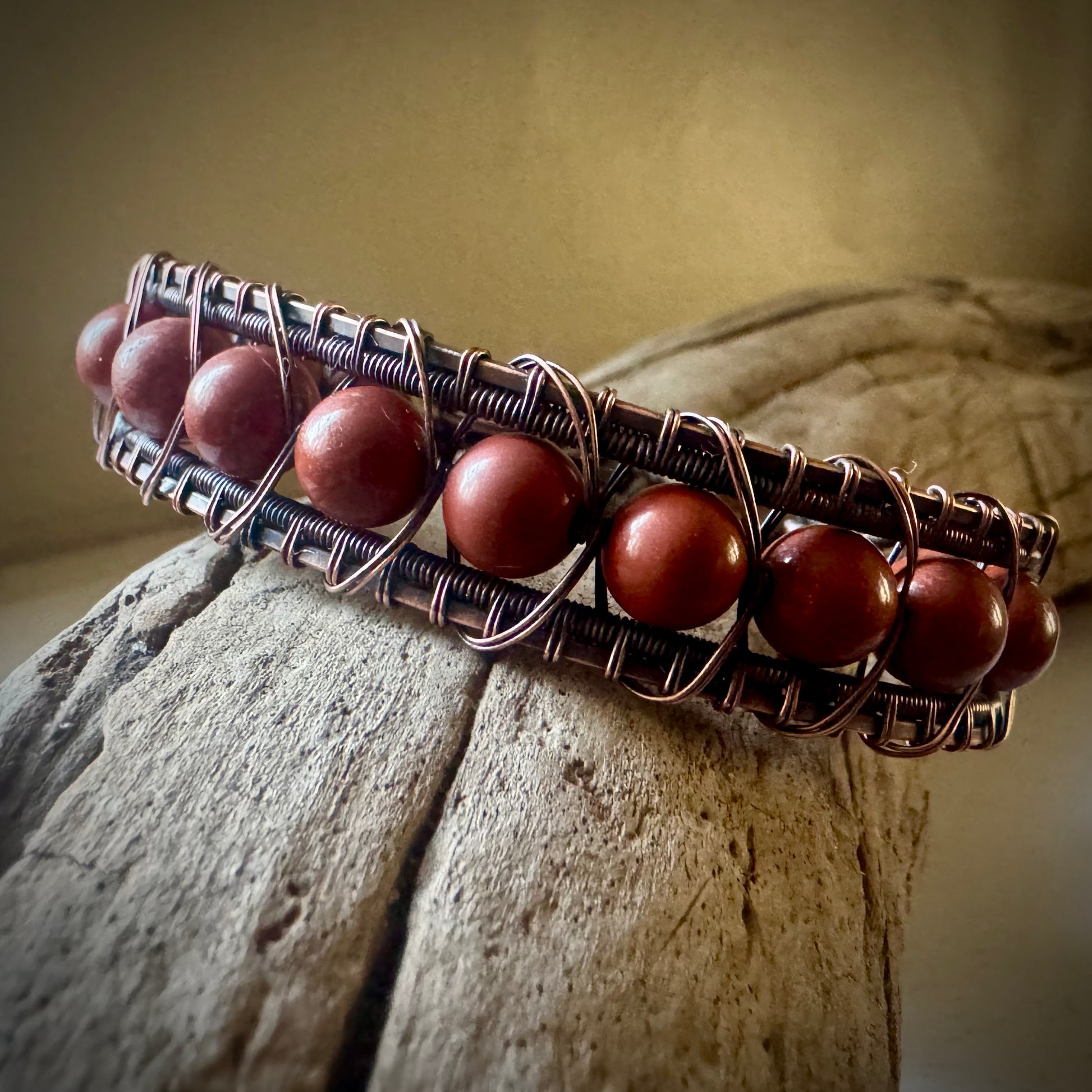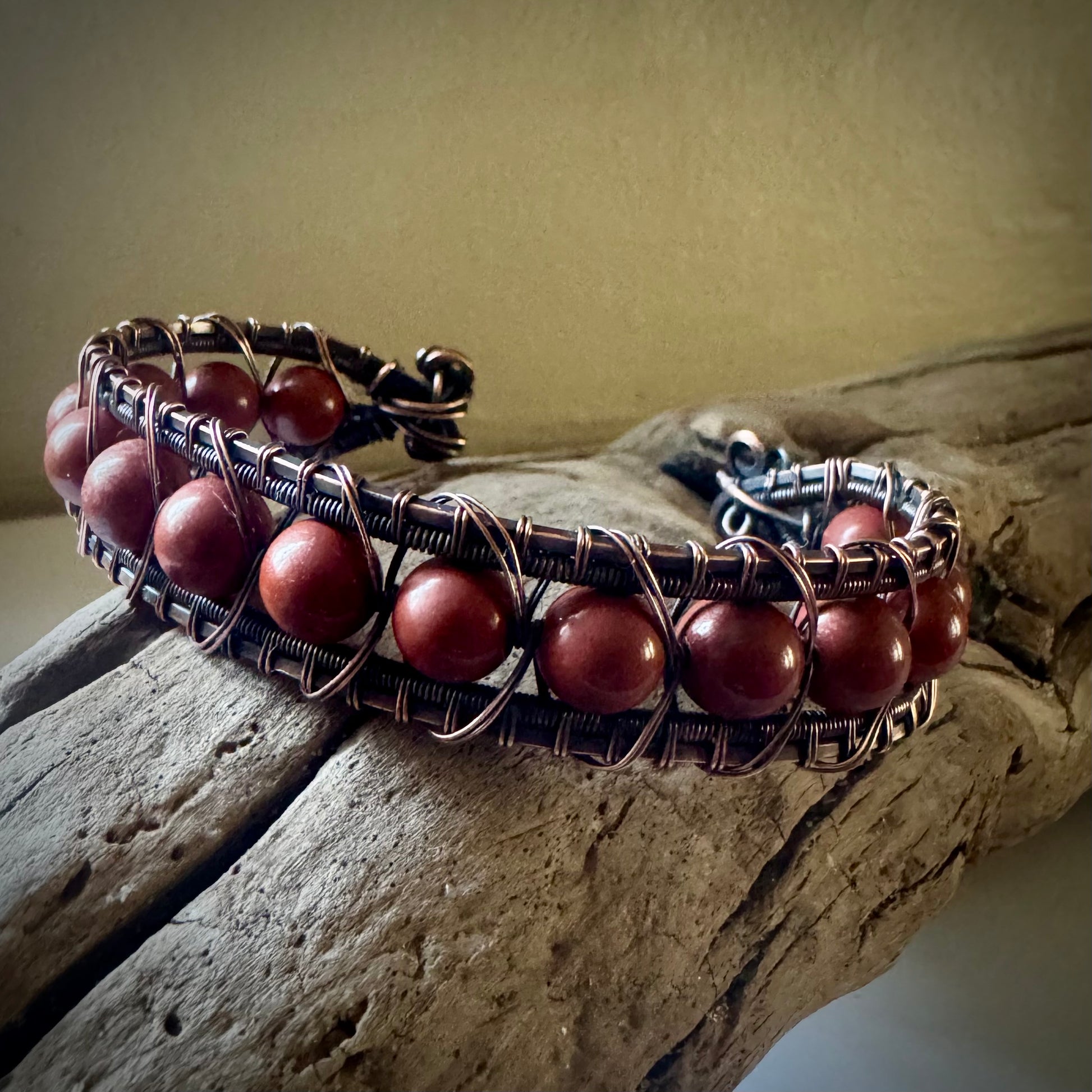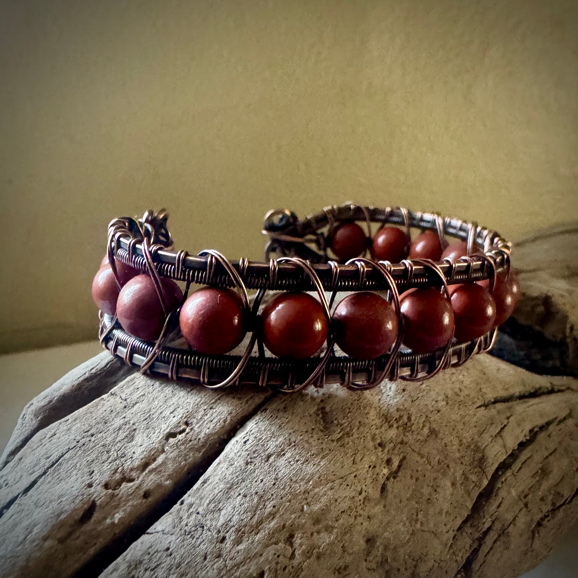 Do not wear jewelry in the shower or swimming. When exposed to water, the metal will tarnish faster. Take jewelry off when sleeping and working out. Copper naturally oxidizes creating a patina. Renaissance Wax can be applied to slow the tarnishing and prevent skin from turning green. Store in a closed box or bag. To clean copper, antique bronze, and silver use baking soda mixed with water to create a paste. Use a toothbrush to scrub the jewelry with paste. Rinse with warm water and dry completely. After cleaning apply Renaissance Wax. Jewelry cleaning cloths can also be used. Use Tarnex only if piece does not have antiqued metal on it. Please note that the type of wire used is very pliable and can bend out of shape if enough pressure is applied. Do not place your wire wrapped jewelry in a purse or pocket. Jewelry may get caught in lace or knit garments.