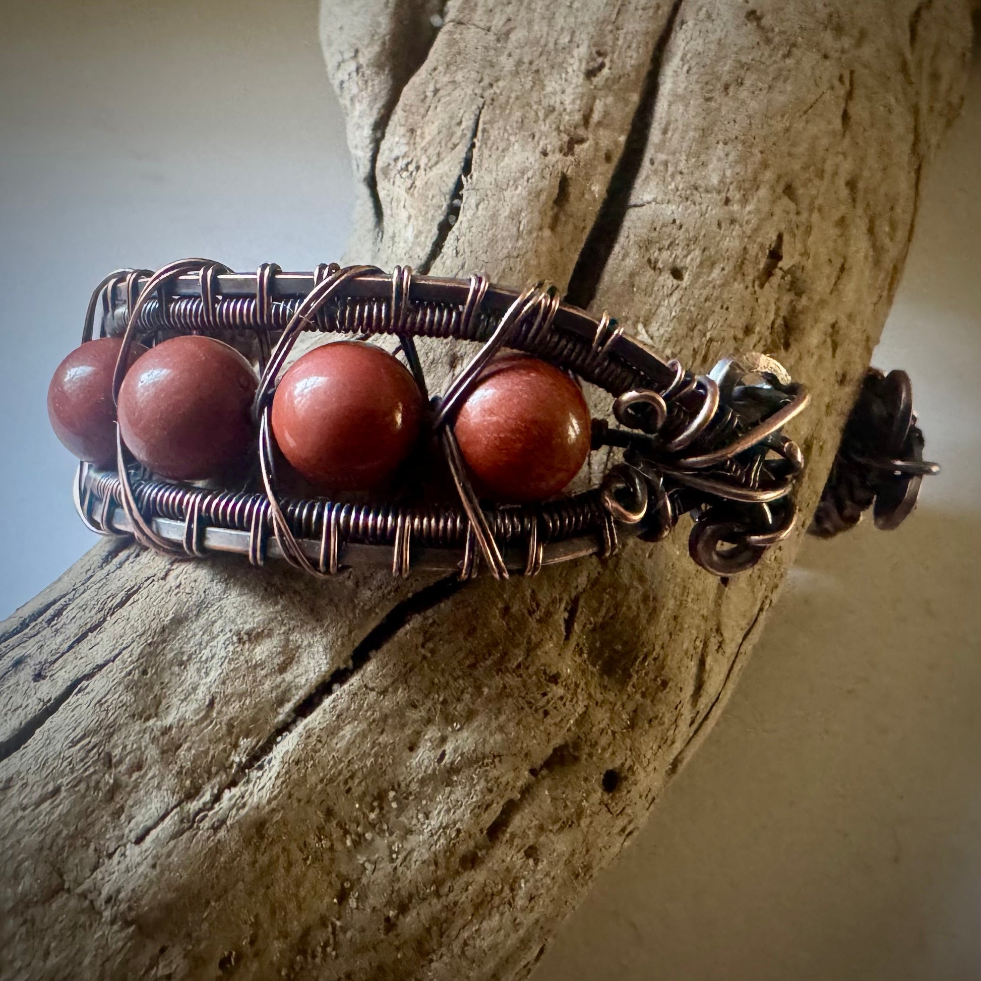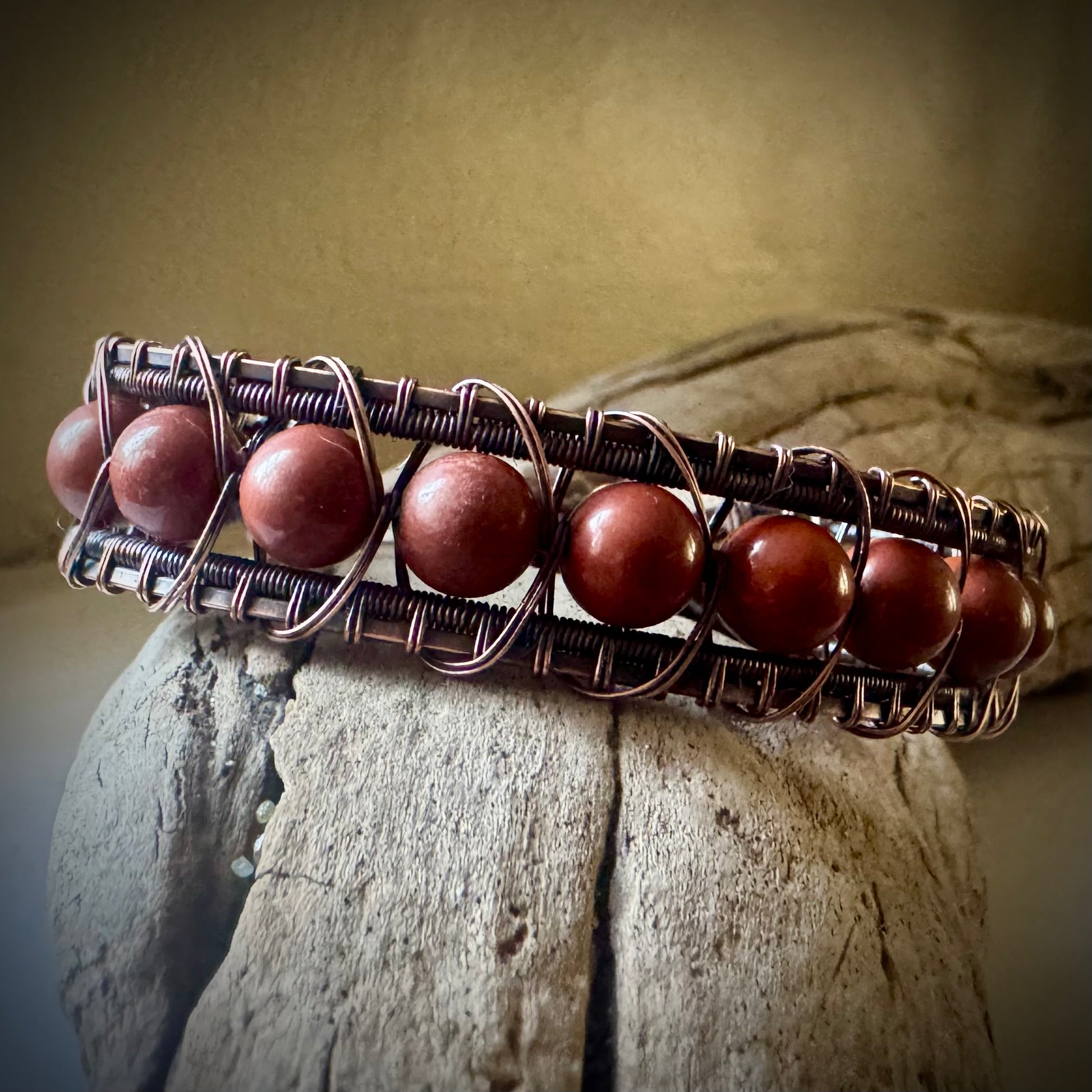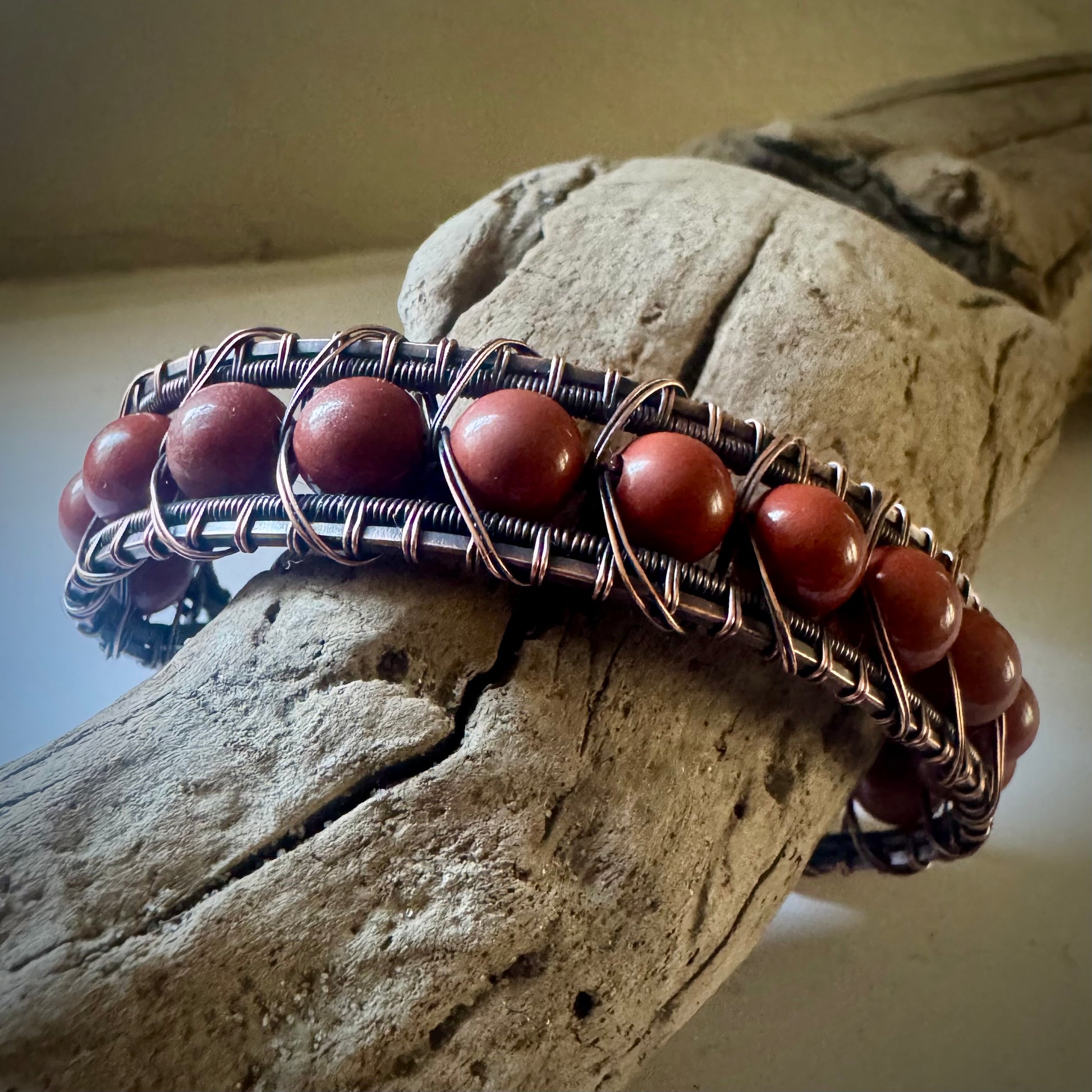 Do not wear jewelry in the shower or swimming. When exposed to water, the metal will tarnish faster. Take jewelry off when sleeping and working out. Copper naturally oxidizes creating a patina. Renaissance Wax can be applied to slow the tarnishing and prevent skin from turning green. Store in a closed box or bag. To clean copper, antique bronze, and silver use baking soda mixed with water to create a paste. Use a toothbrush to scrub the jewelry with paste. Rinse with warm water and dry completely. After cleaning apply Renaissance Wax. Jewelry cleaning cloths can also be used. Use Tarnex only if piece does not have antiqued metal on it. Please note that the type of wire used is very pliable and can bend out of shape if enough pressure is applied. Do not place your wire wrapped jewelry in a purse or pocket. Jewelry may get caught in lace or knit garments.