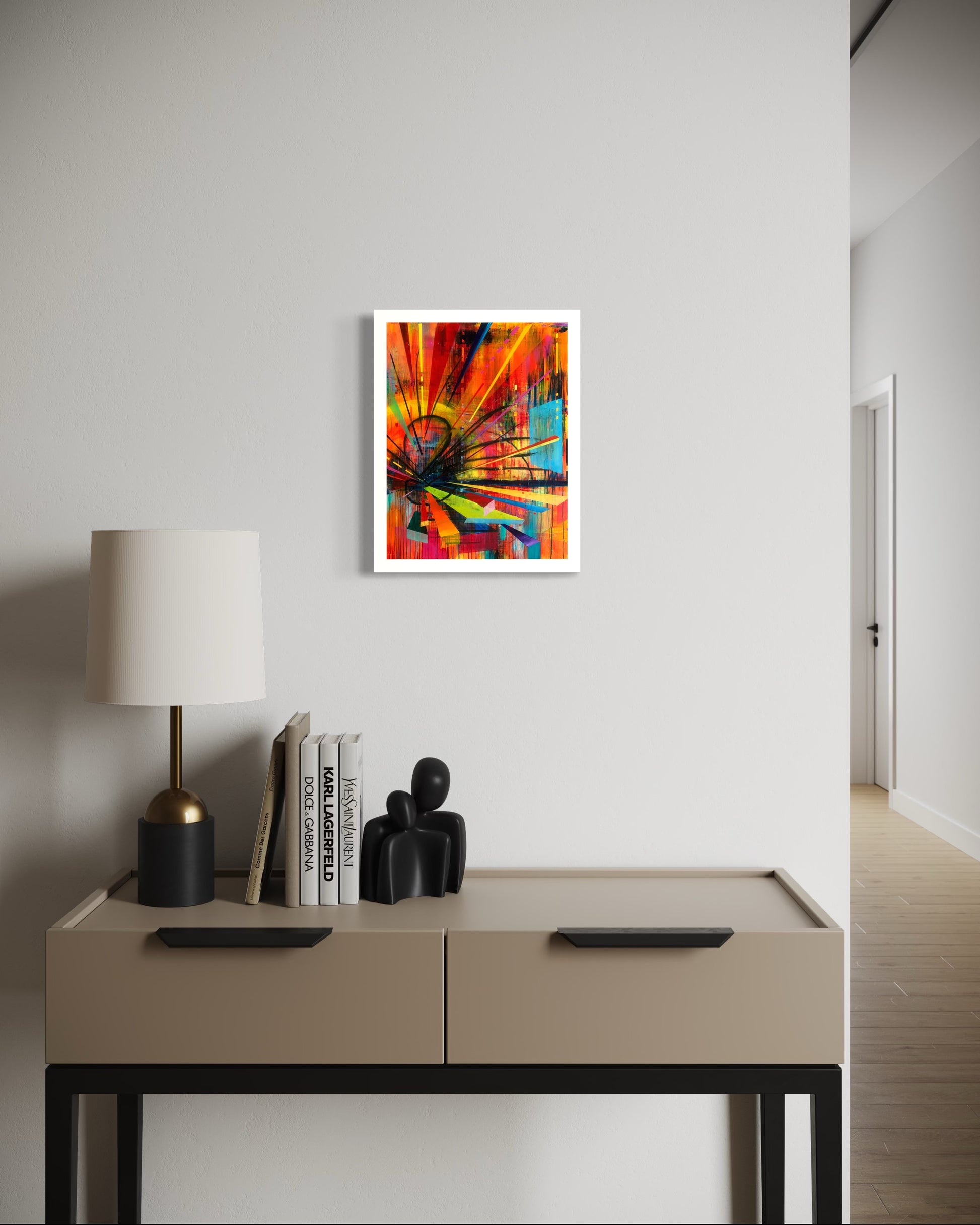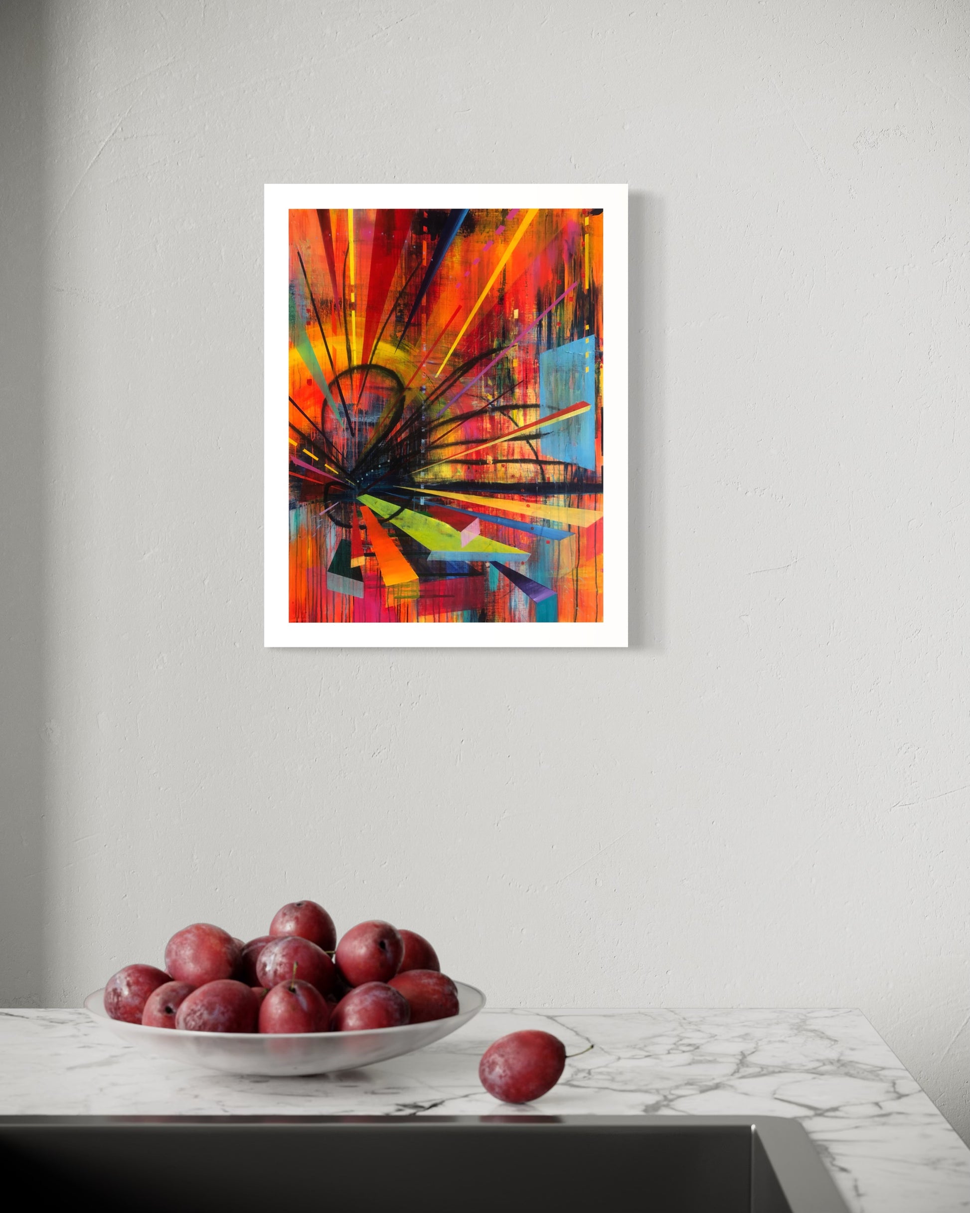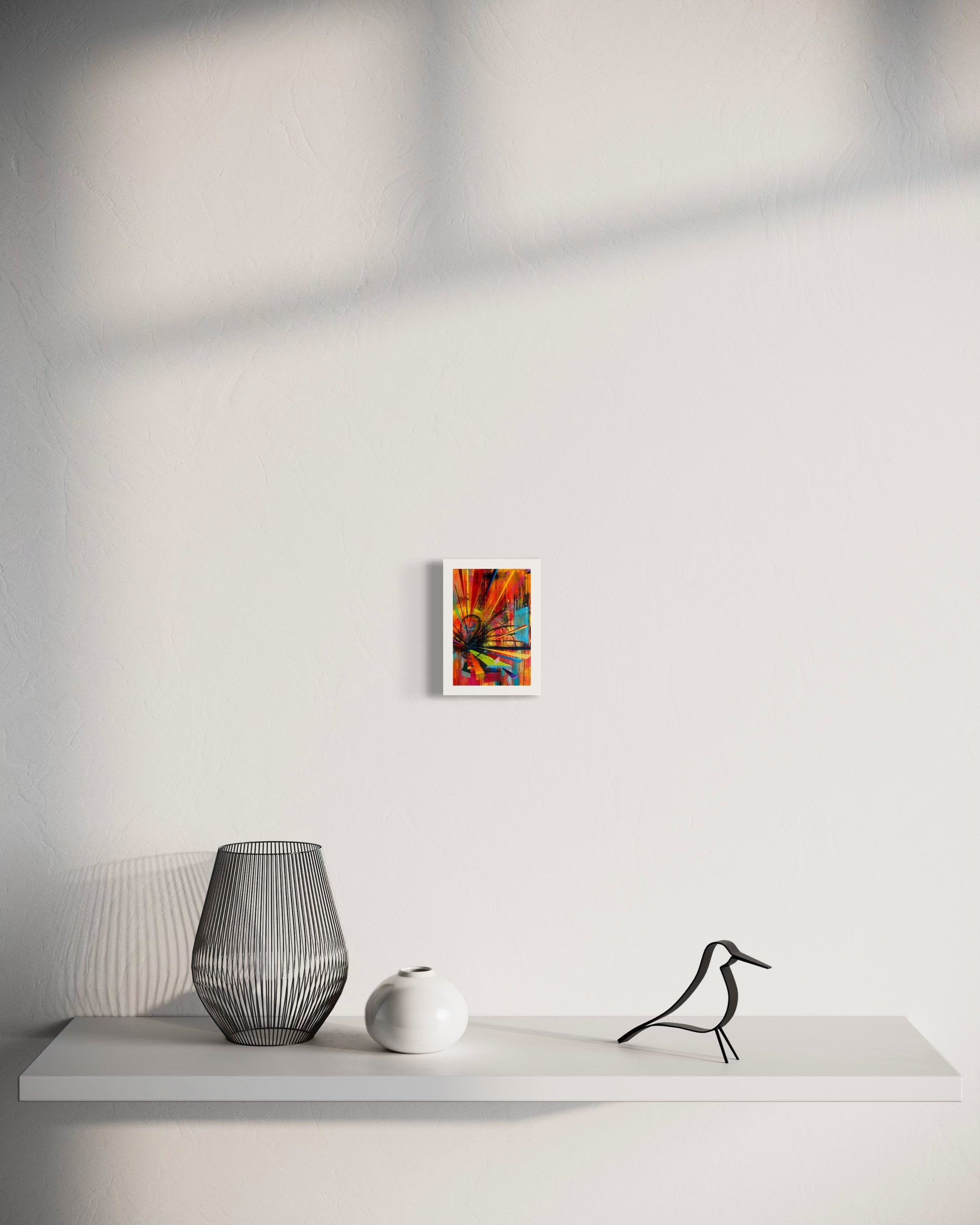 I painted the original piece with acrylic paint and oil stick on panel.