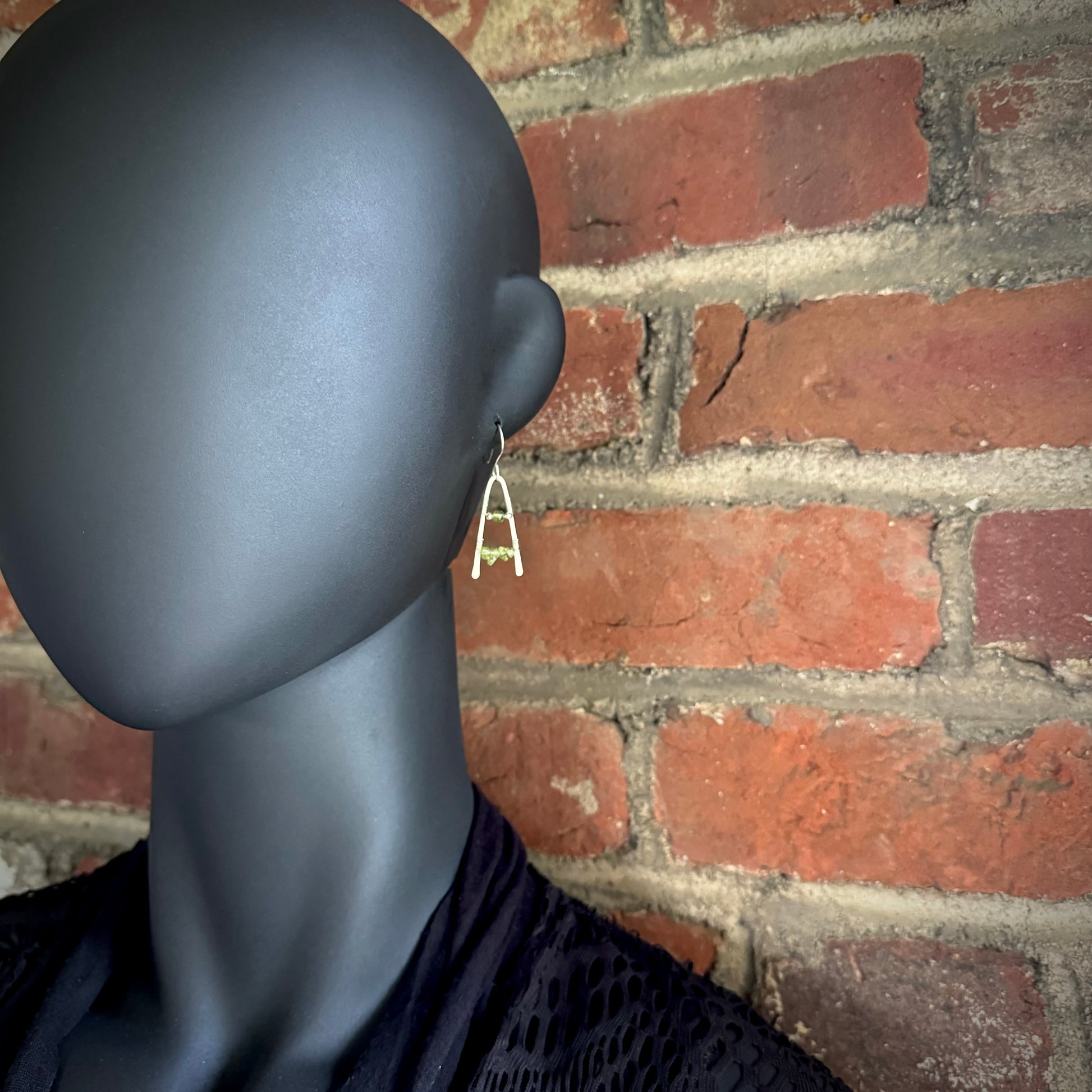 Peridot and Hammered Sterling Silver A-Frame Earrings - Made to Order