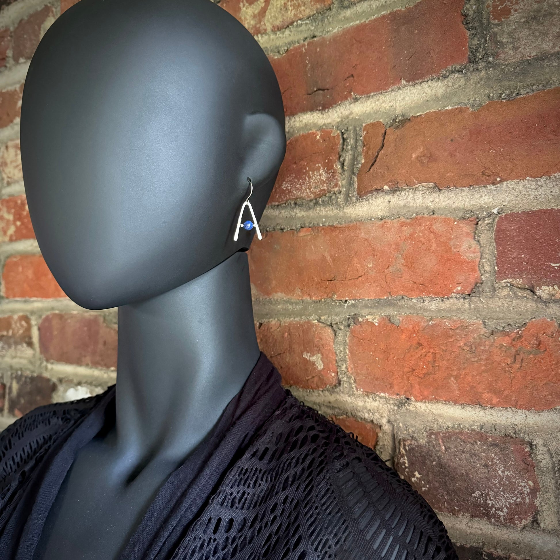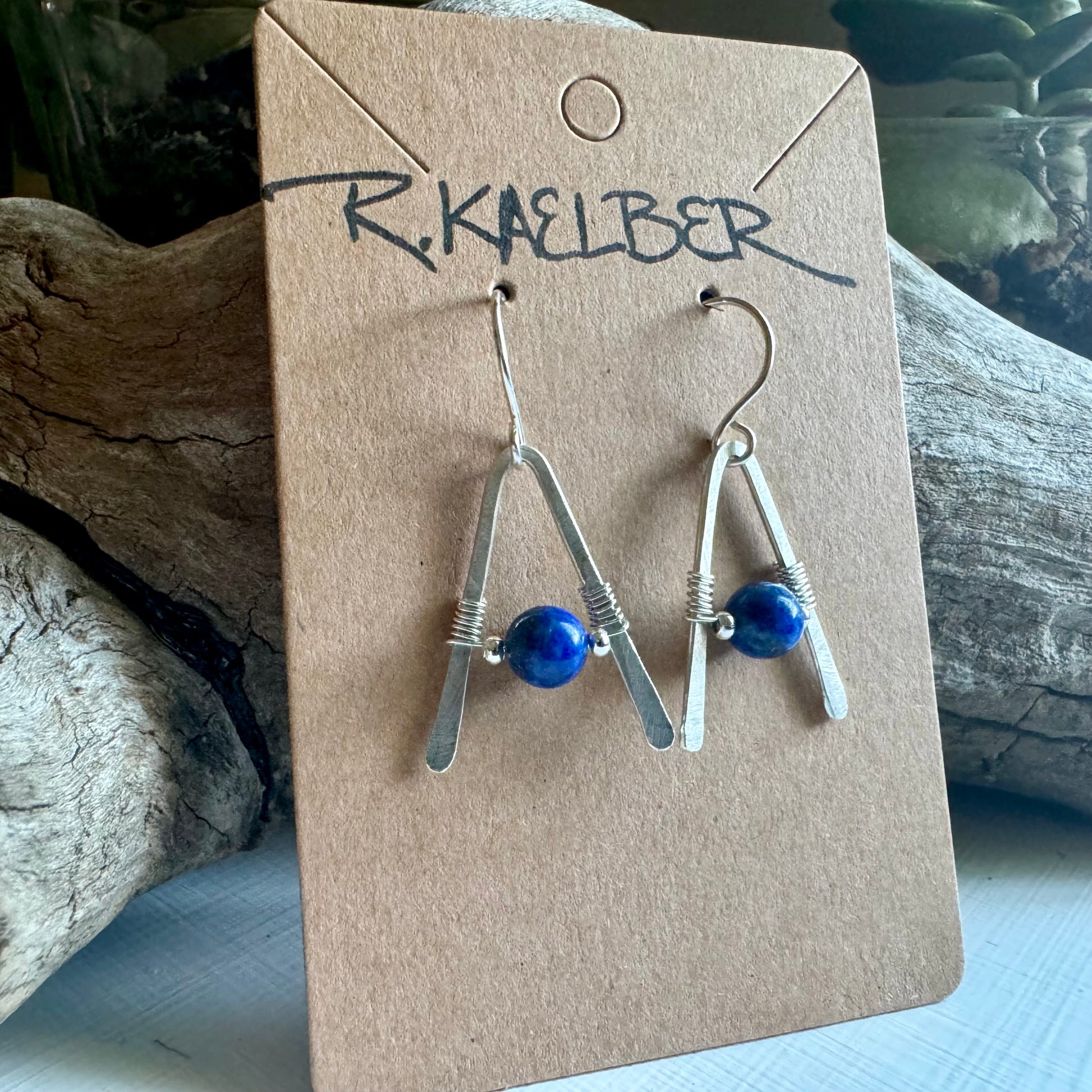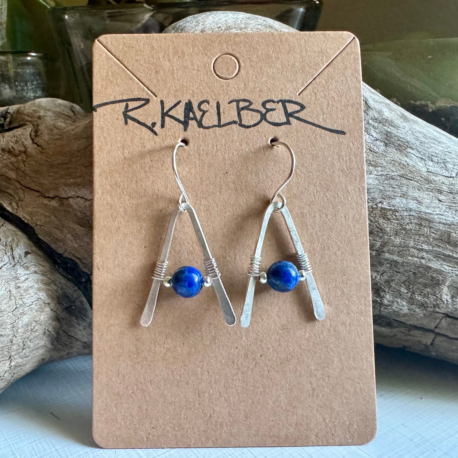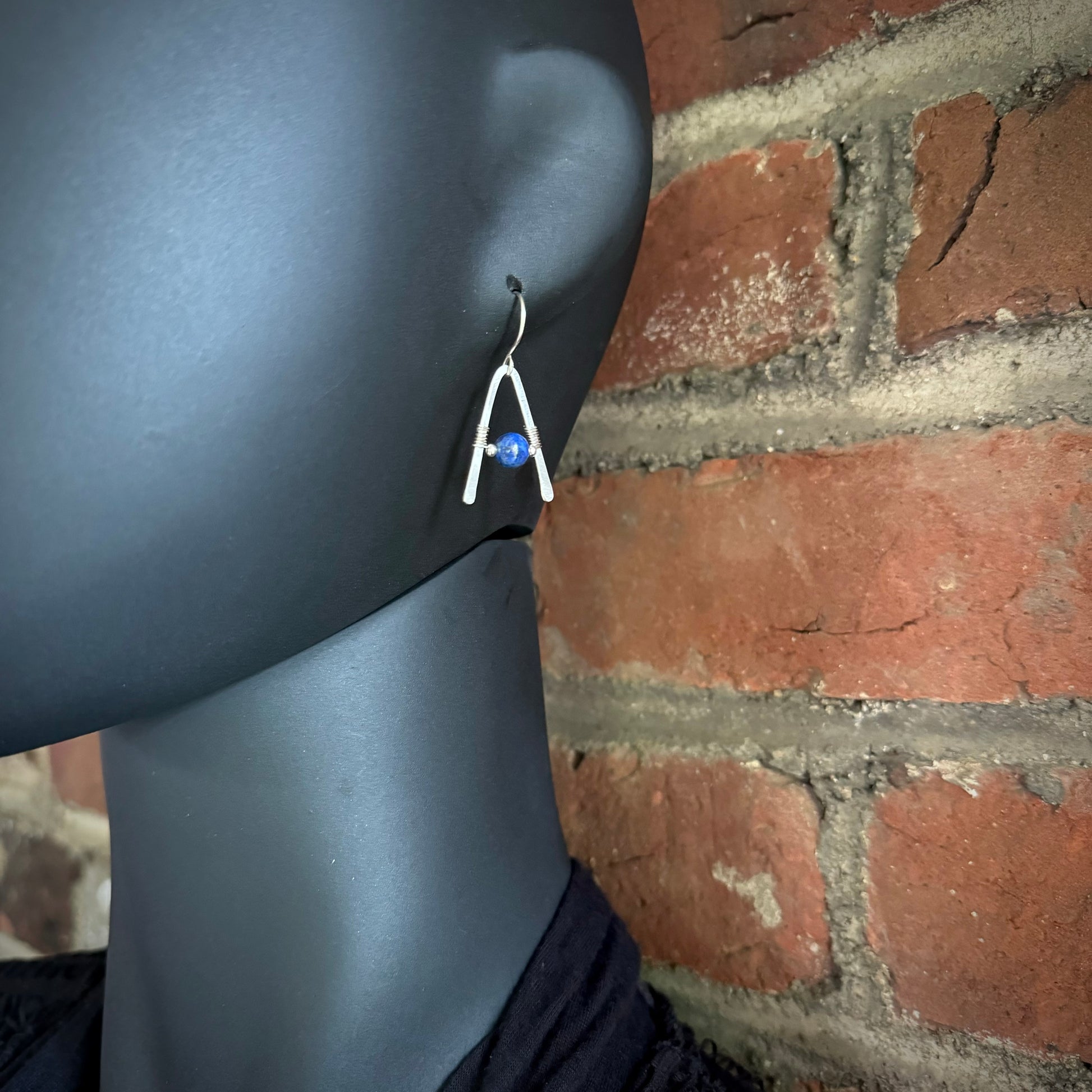 Lapis Lazuli A-Frame Earrings with Hammered Sterling Silver - Made to Order
