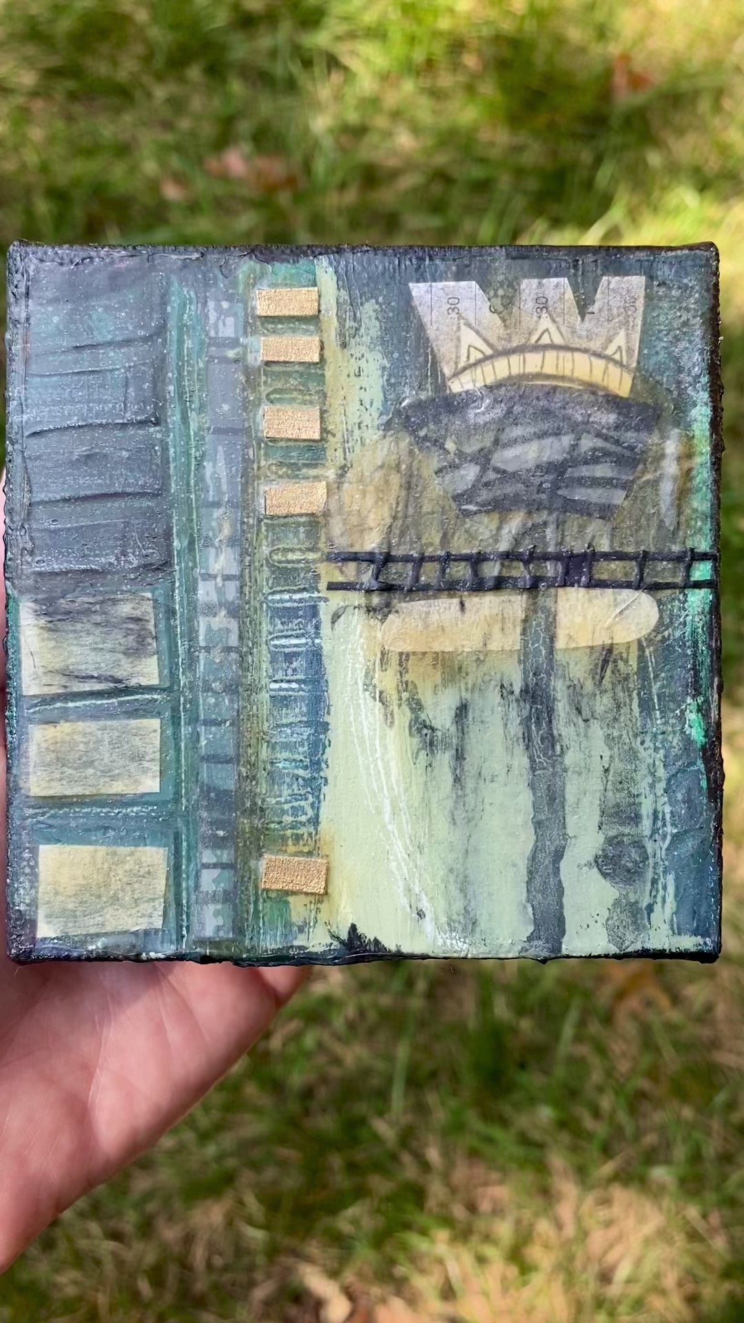 Challenge Four- Finish Unfinished Work- Along with recycling my old artwork, some pieces were just not good enough or were missing something. So, I was determined to finally finish these pieces. The work throughout this project, works vary in size from 4x4 to 24x36. For the first 90 days I completed a work of art a day. For the last 10 days I worked larger pieces and built up many layers with collage and gel mediums. (Because of drying time, I could not execute these pieces in one day, so I worked on them simultaneously)