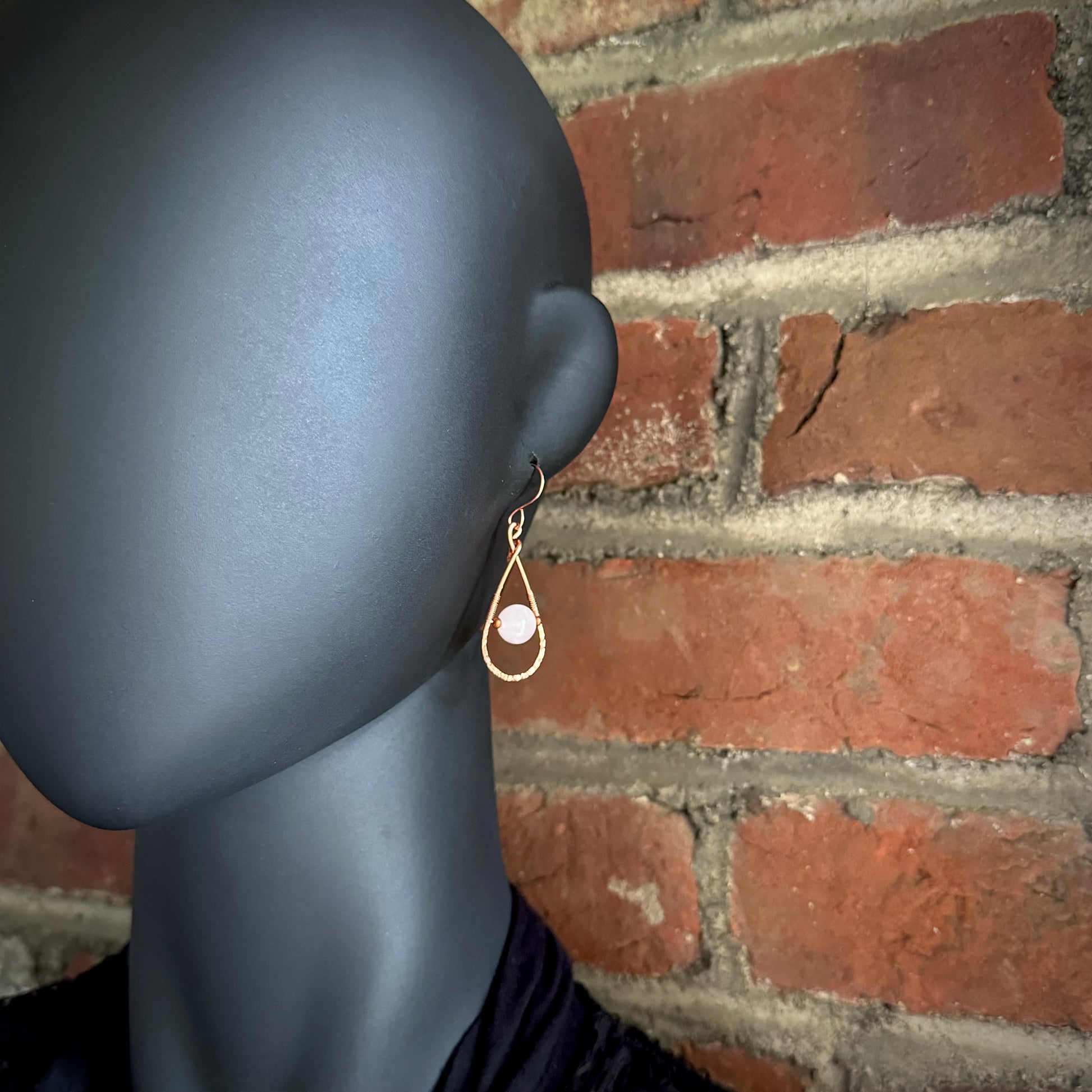 Rose Quartz and Copper Teardrop Earrings- Made to Order