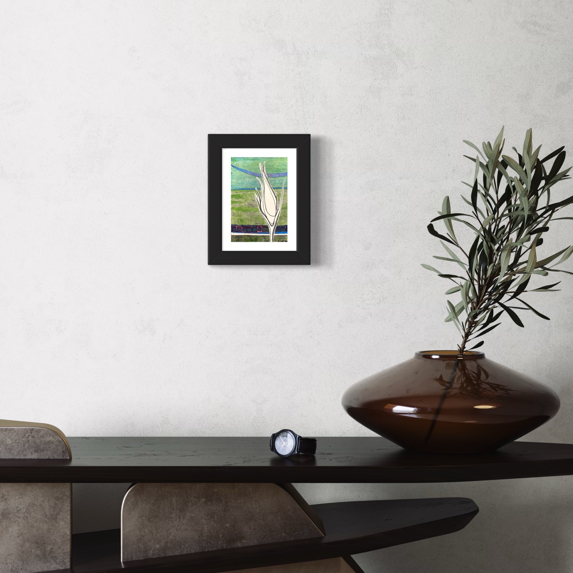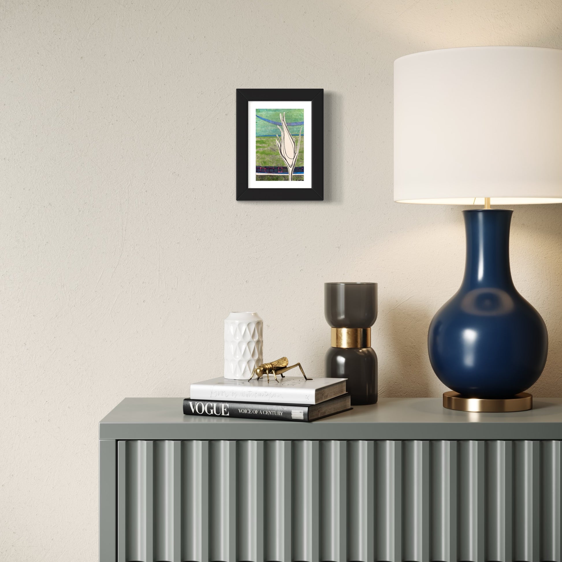 Framed. White mat with black frame. Frame size : 8.5”x6.5”