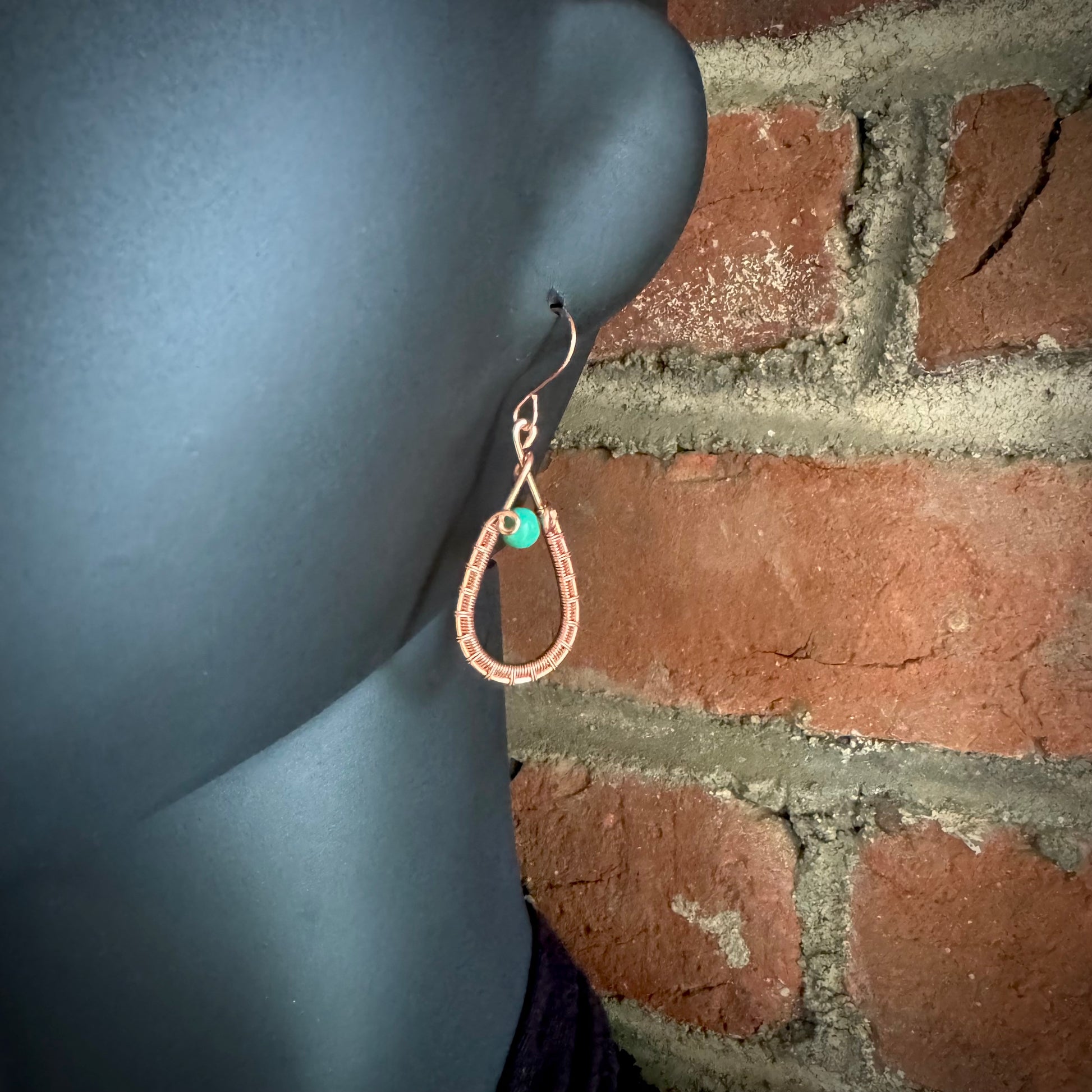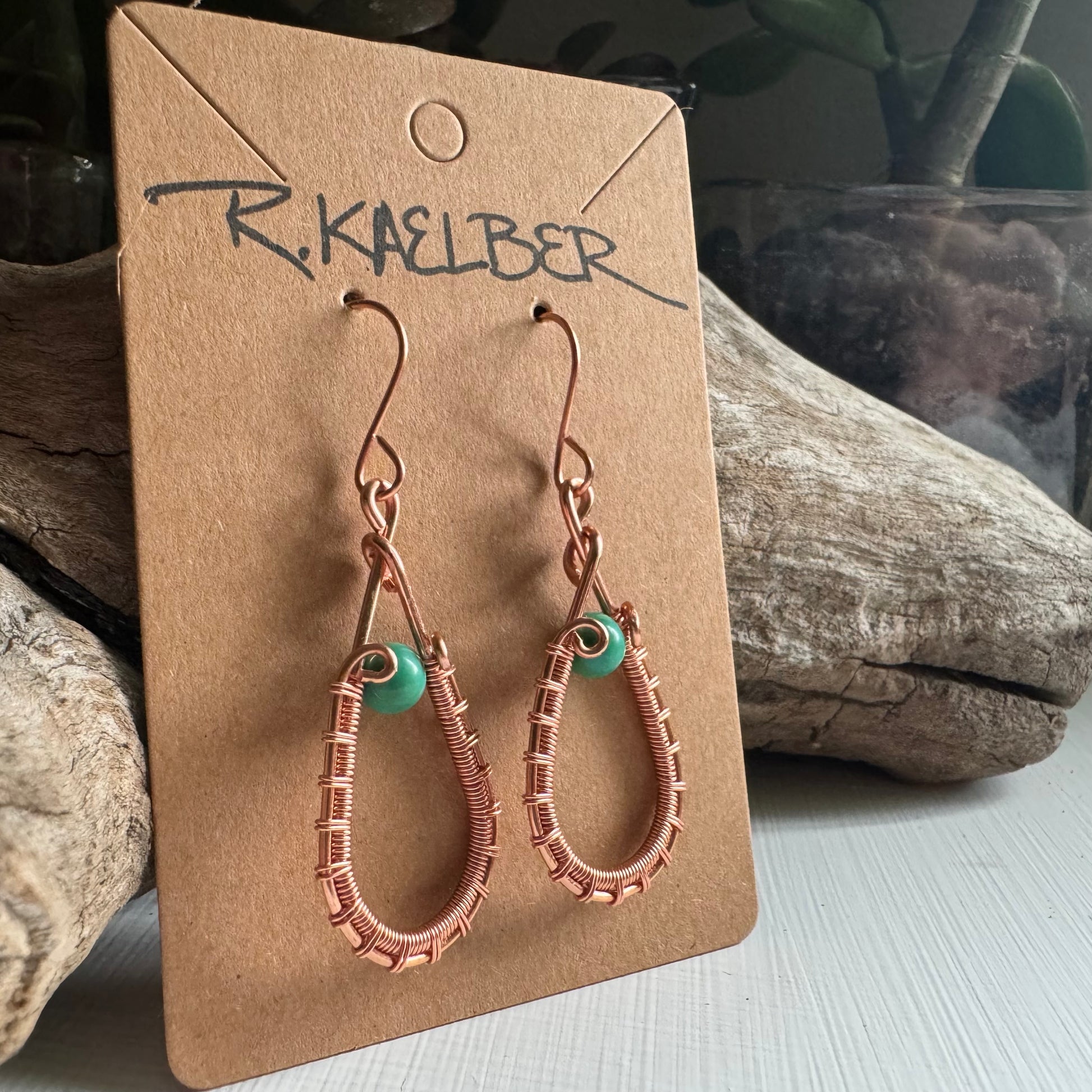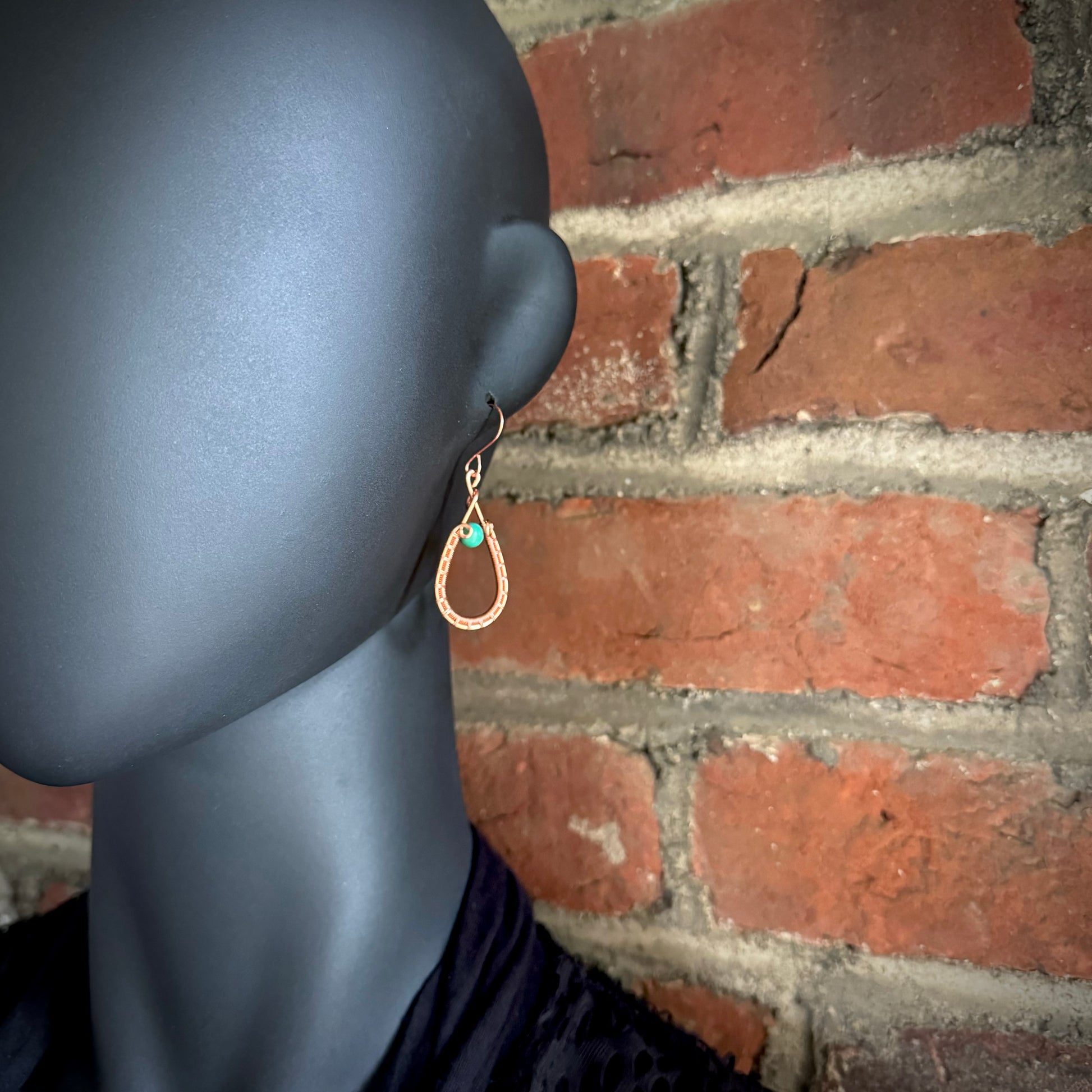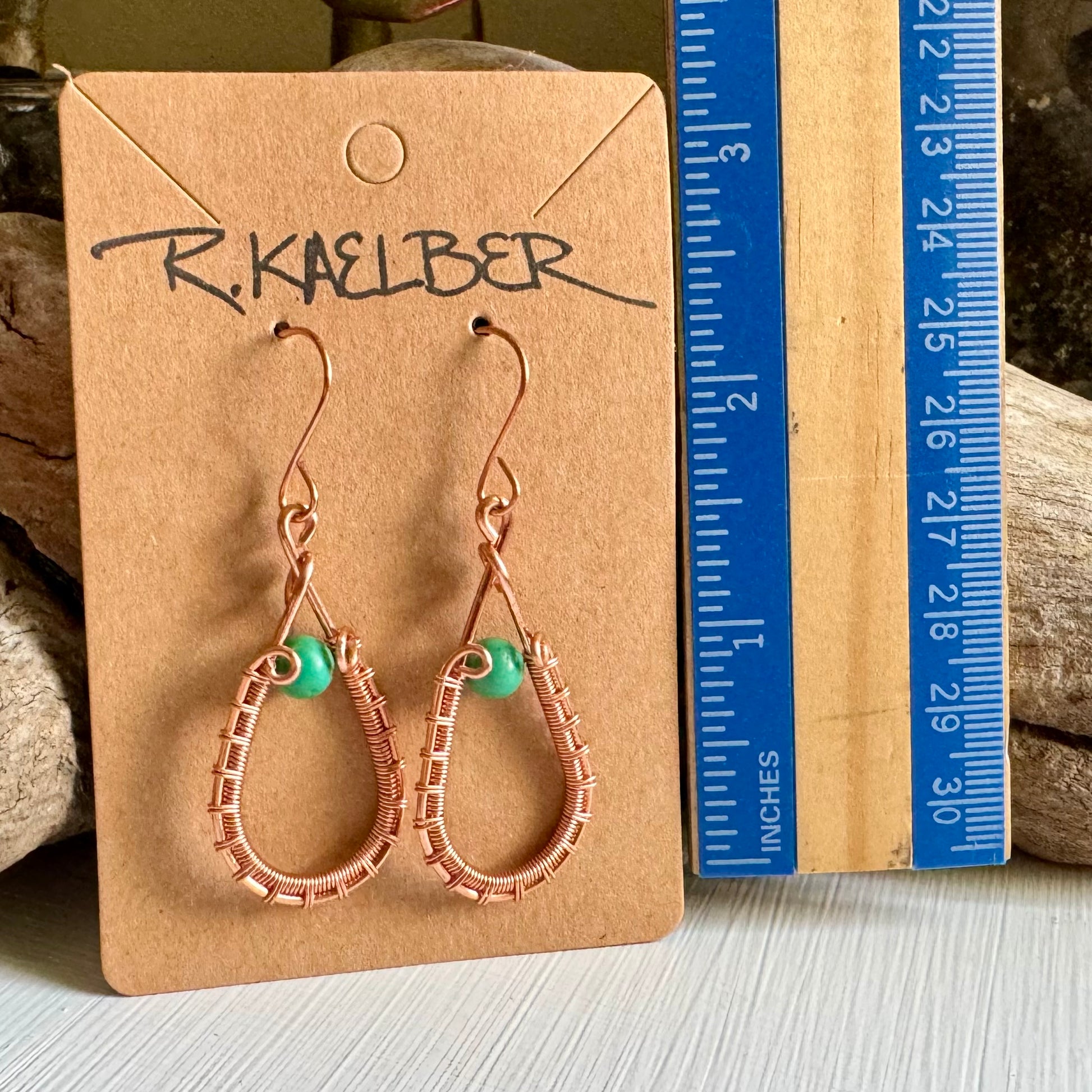 Turquoise Teardrop Earrings with Wire Wrapped Copper - Made to Order