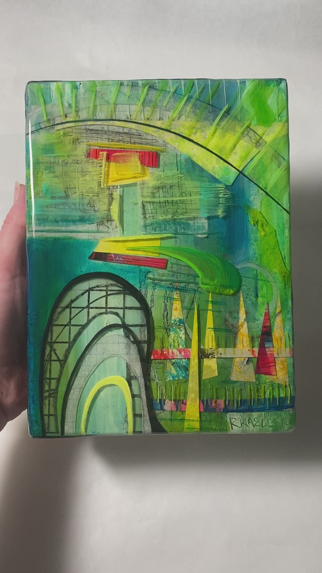 Medium: Acrylic, paper, plastic, oil pastel and resin on canvas.